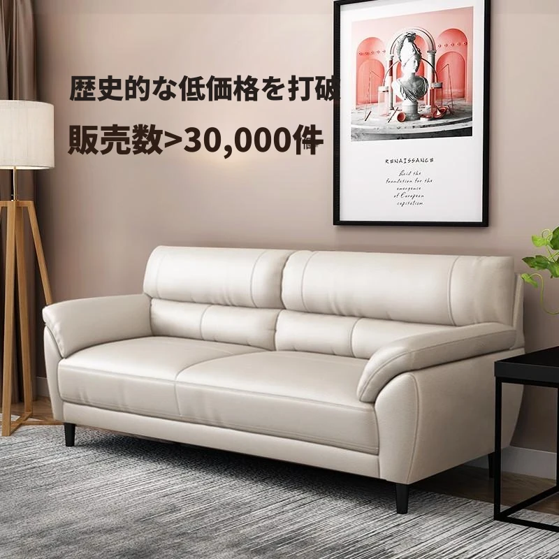 【香港送料無料】北欧風シンプルデザイン!2人掛け本革小型ソファ - 居間やオフィスに最適なモダン3人用皮革ソファ!快適さとスタイルを両立した一品です。