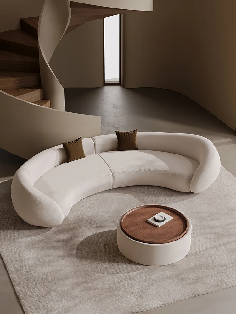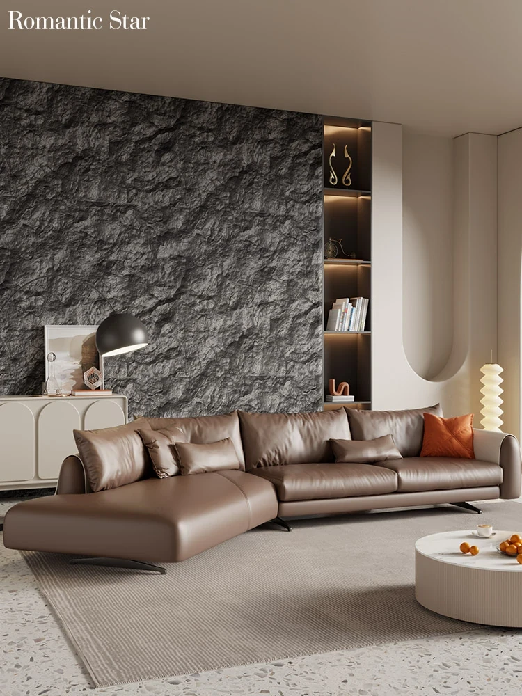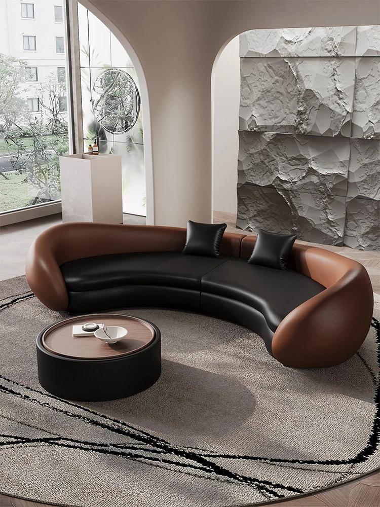 フェラーリレザーソファー|ディリラ同モデルの現代イタリアンミニマリズム|ラグジュアリーなリビングに最適な大サイズ|曲線デザインのコーナーソファ|異形ヴィラにもぴったり!