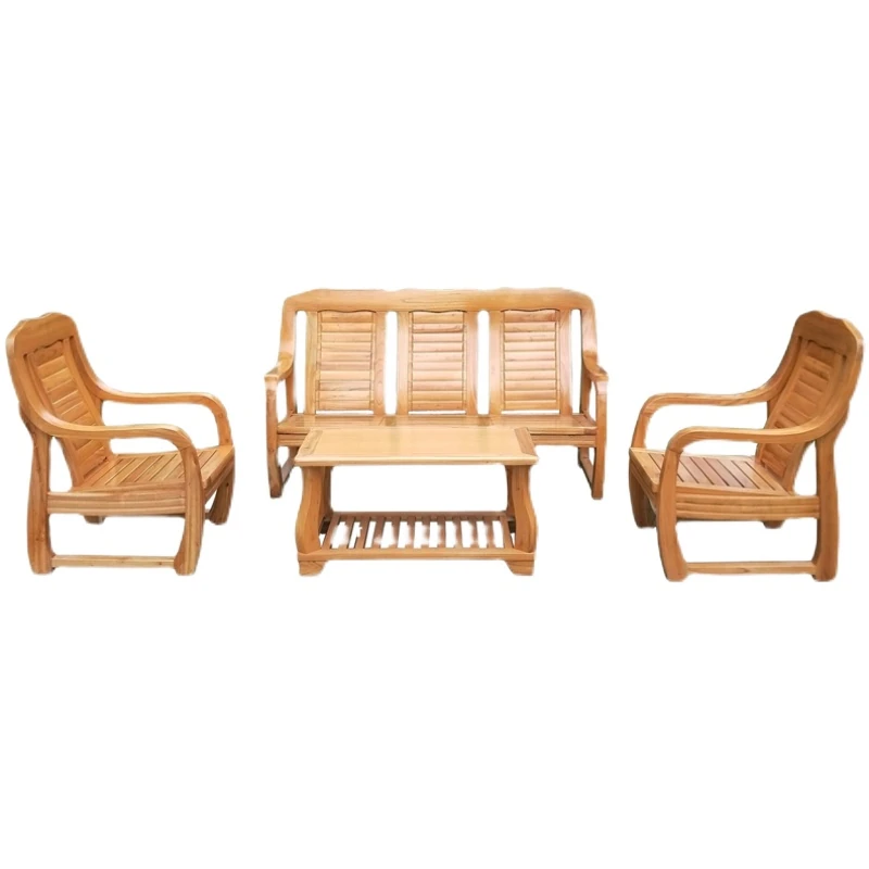 現代新中式ウッドソファ&テーブルセット - シンプルでラグジュアリーなリビングルームにぴったり、上質なウッディデザインで別荘や高級マンションにも最適!