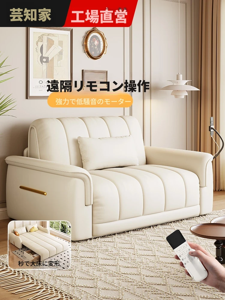 最新モデル!電動ソファベッド - 折りたたみ式で猫爪レザー使用、機能満載の一人用!狭いリビングにも最適で、スマートなデザインが魅力!