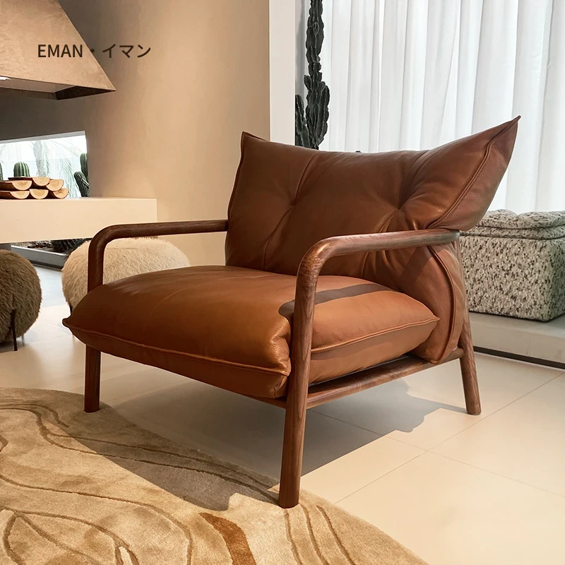デザイナーズ ホワイトアッシュ 本革 カジュアルチェア 北欧モダン リビング用 一人掛けソファ 中古風 背もたれ付き 機能的でスタイリッシュな空間を演出する、あなたのくつろぎのための理想的な椅子!