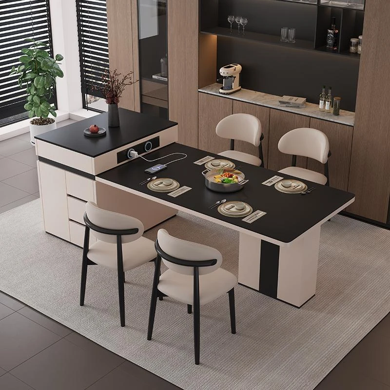 折りたたみ式の丸型&四角型兼用ダイニングテーブル2025年新モデル!小さなスペースに最適な岩板製のモダンシンプルなテーブル&チェアセット。家族や友人との楽しい食事を演出します!
