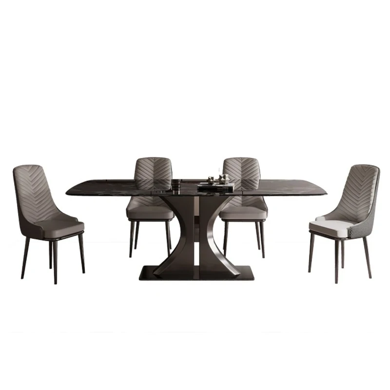 イタリアンミニマルデザインのスレートダイニングテーブル|家庭用小型タイプ|モダンでシンプルな長方形テーブル&チェアセット|経済的でスタイリッシュな食卓を演出!