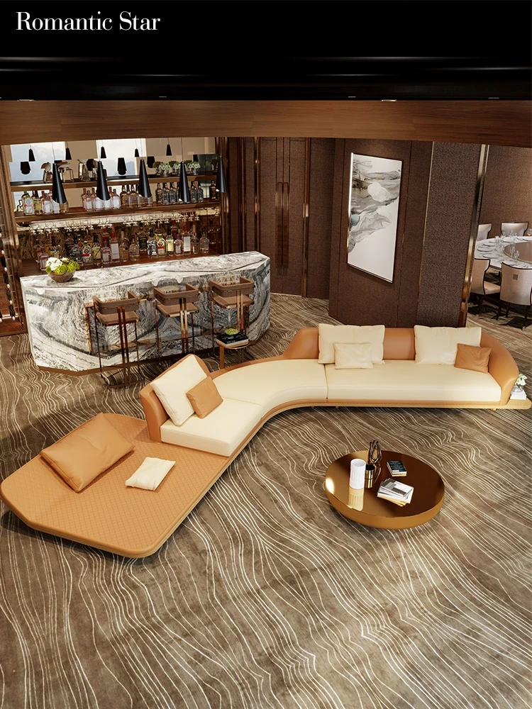 Luxury Petal Sofa - Premium Leather, Designer Curved Corner Sectional for Villa Living Room, Stylish and Functional Design