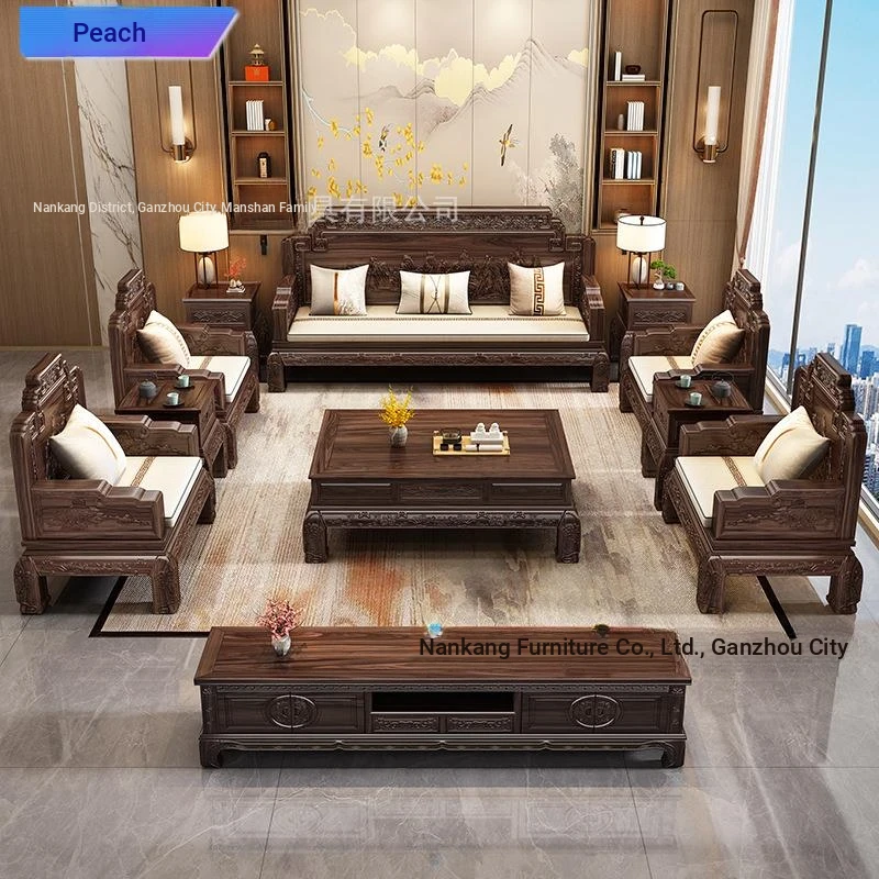 South American Walnut New Chinese Style Solid Wood Sofa Set - Classic Ming and Qing Dynasty Carved Furniture for All Seasons, Perfect for Living Room Elegance