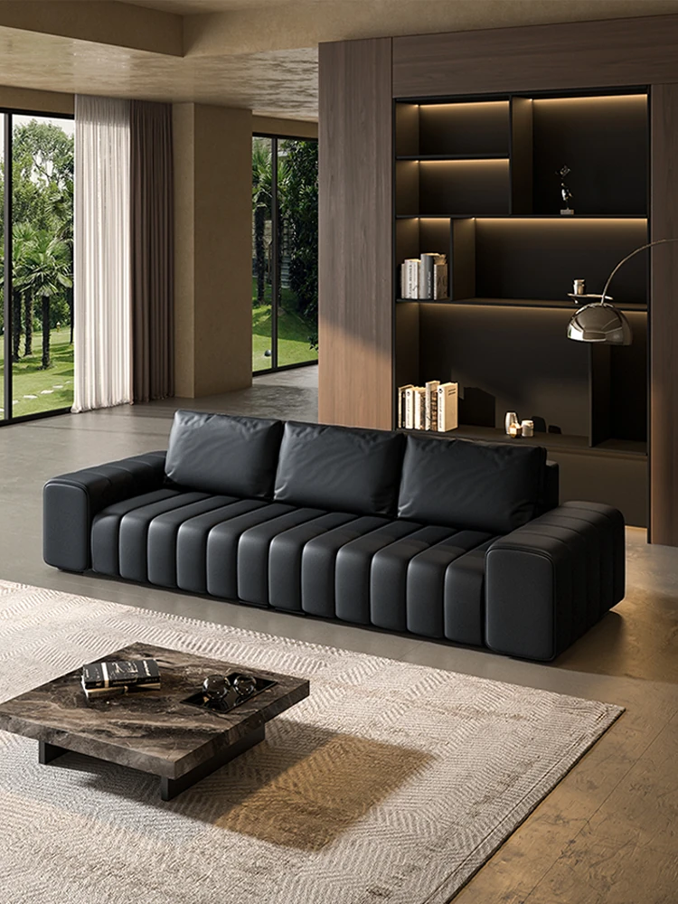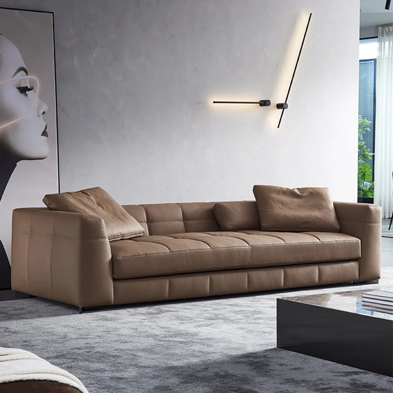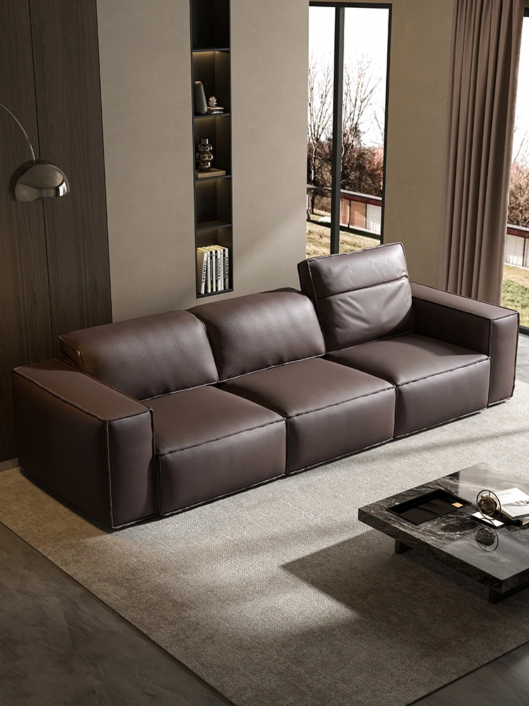 Italian Minimalist Full Leather Sofa - Premium Top-Grain Cowhide Designer Sofa for High-End Villas and Living Rooms, Sleek Straight-Line Design