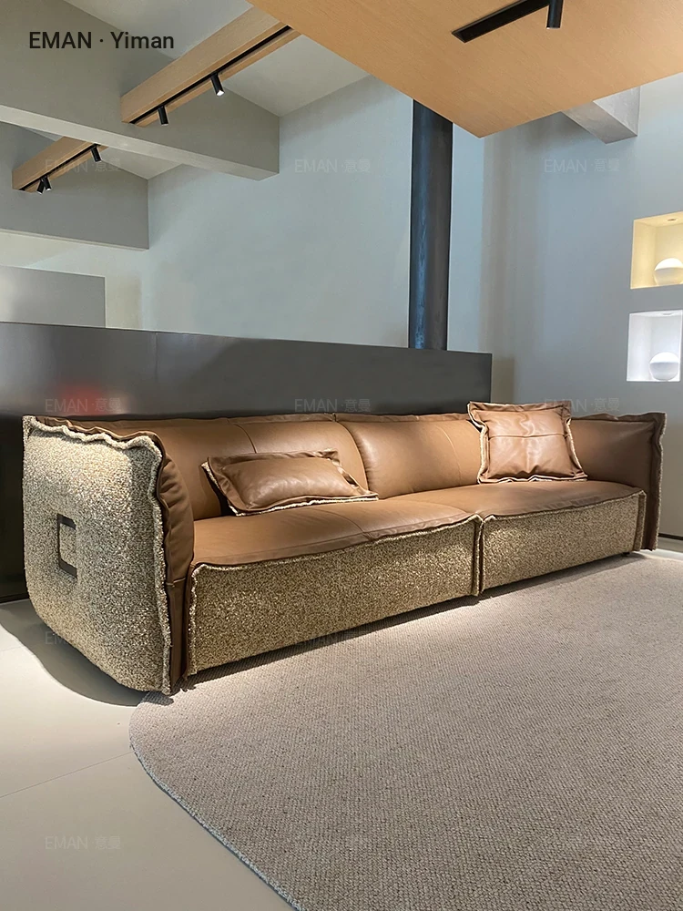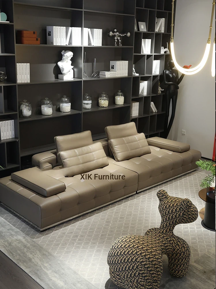 2025 New Designer Minimalist Genuine Leather Sofa Set - Top Grain Cowhide with Down-Filled Fabric for Modern Living Room