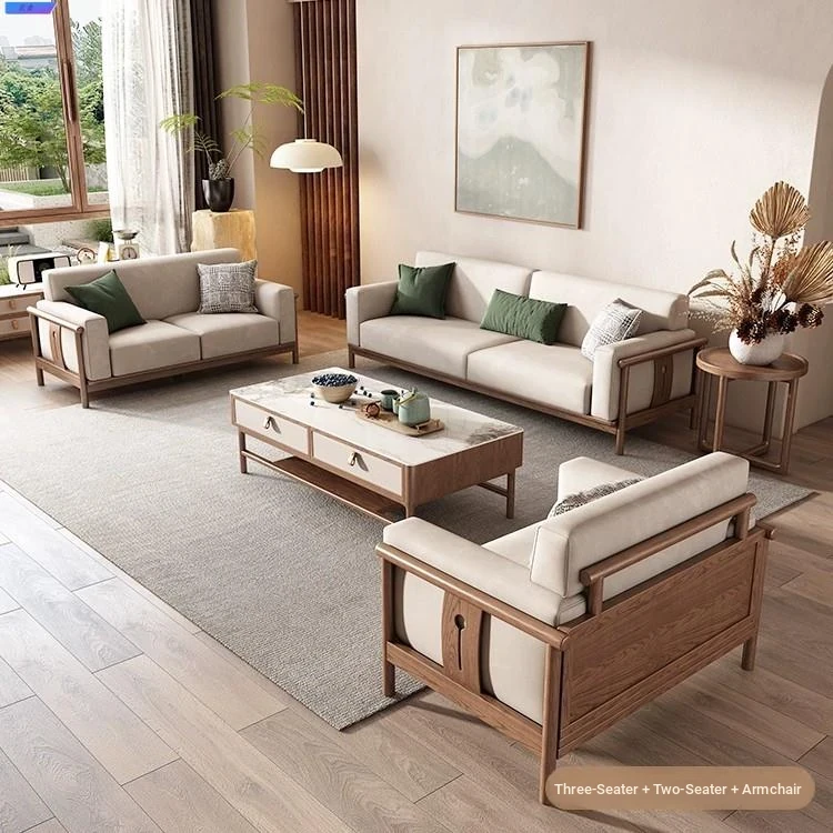 Nordic Solid Wood Sofa Set - Modern Minimalist Fabric Daybed for Small Spaces, Perfect for Living Rooms, Available in 3-Seat and 4-Seat Combinations.