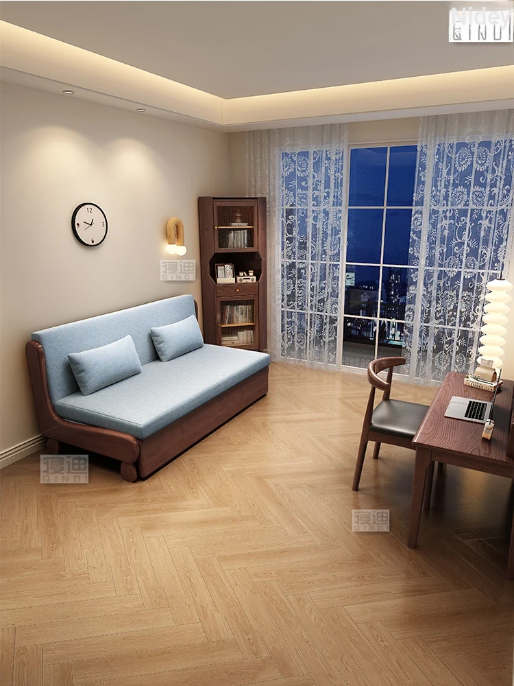 2025 New Multifunctional Solid Wood Sofa Bed - Space-Saving, Foldable Design for Small Apartments, Perfect for Single and Double Use - Ideal for Your Study Room with a Natural Wood Aesthetic