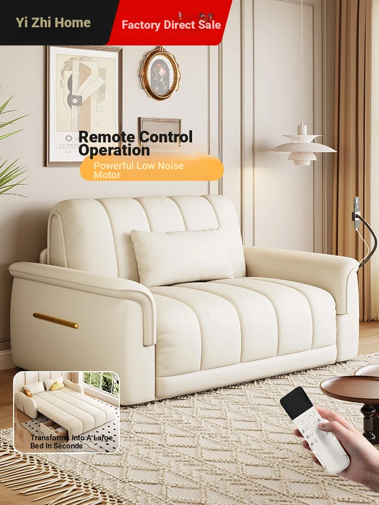 New Multi-Functional Electric Sofa Bed with Cat Claw Resistant Leather - Foldable, Ideal for Small Living Rooms, Smart Design for Single Use