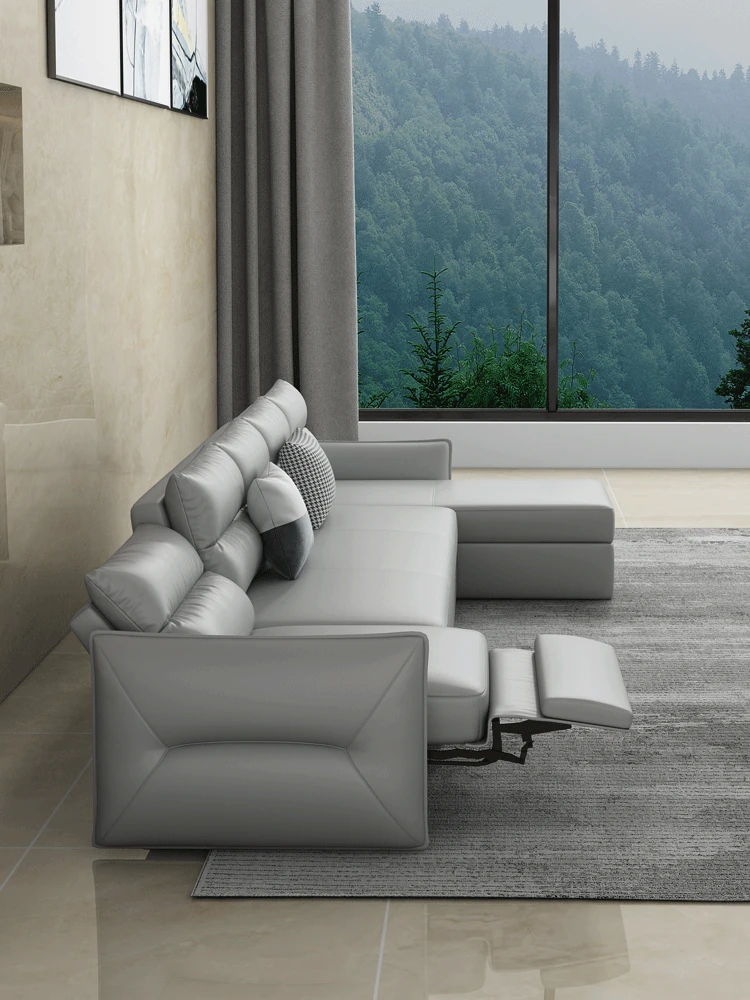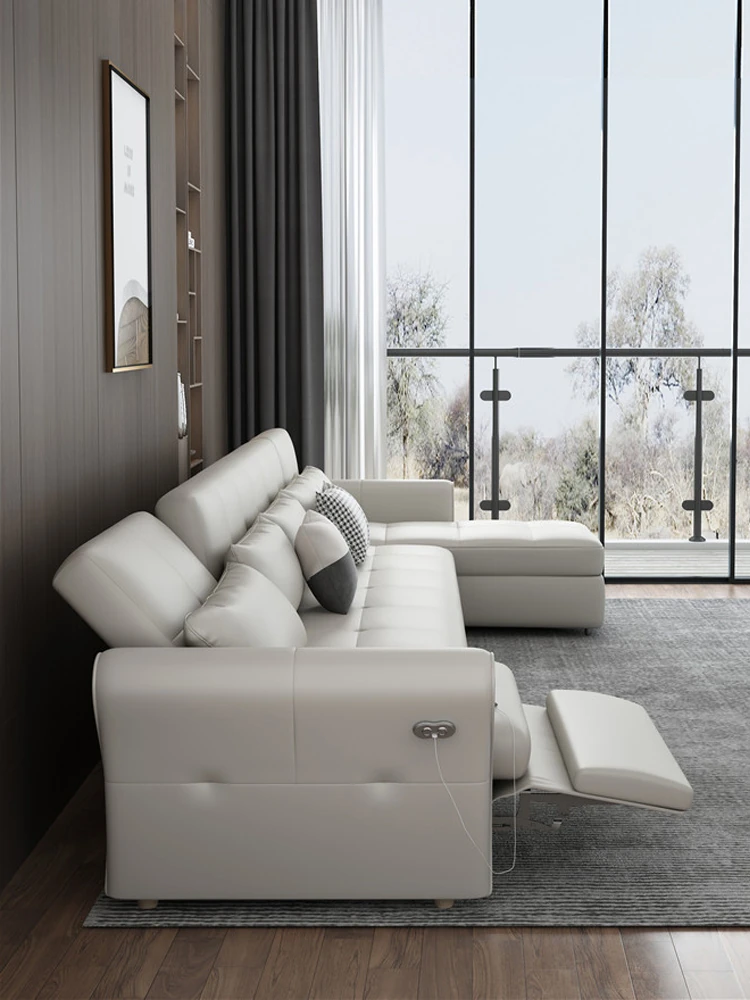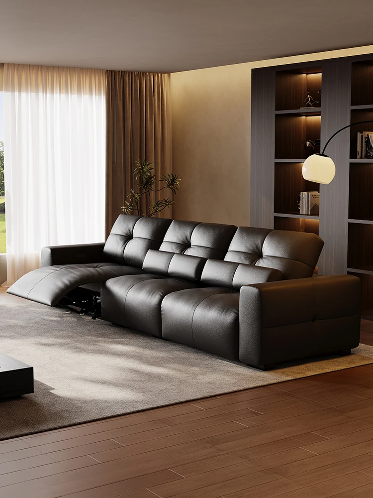 Elegant Minimalist Genuine Leather Sofa with Electric Recliner - Multifunctional Storage Solution for Modern Living Room, Perfect for Small Spaces