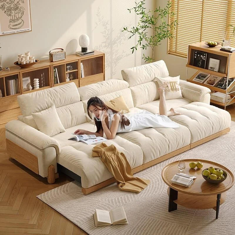 Japanese Cream Wind Electric Reclining Sofa - Modern Minimalist 3-Seater Fabric Sofa Bed for Small Spaces with Solid Wood Frame, Perfect for Your Living Room!