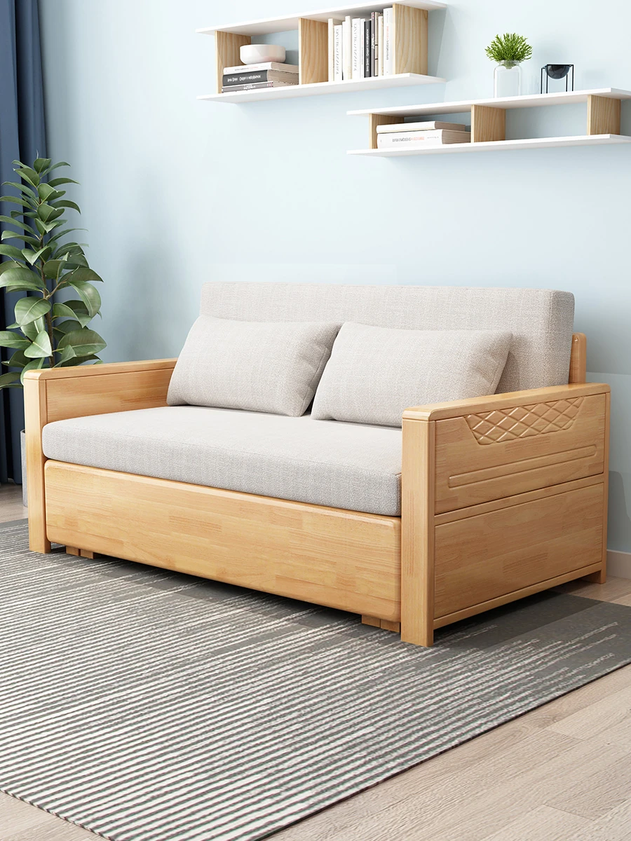Best-Selling 10,000+ New Chinese Style Solid Wood Folding Sofa Bed - Multi-Functional, Space-Saving, and Expandable for Small Living Rooms