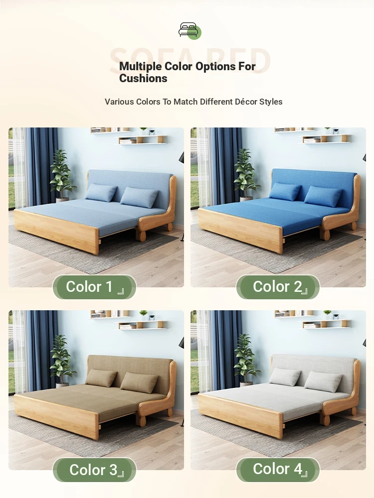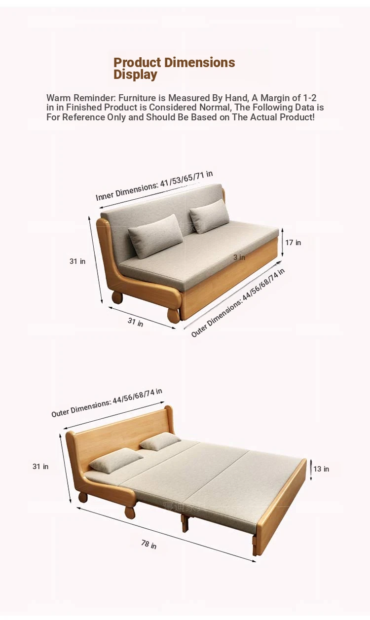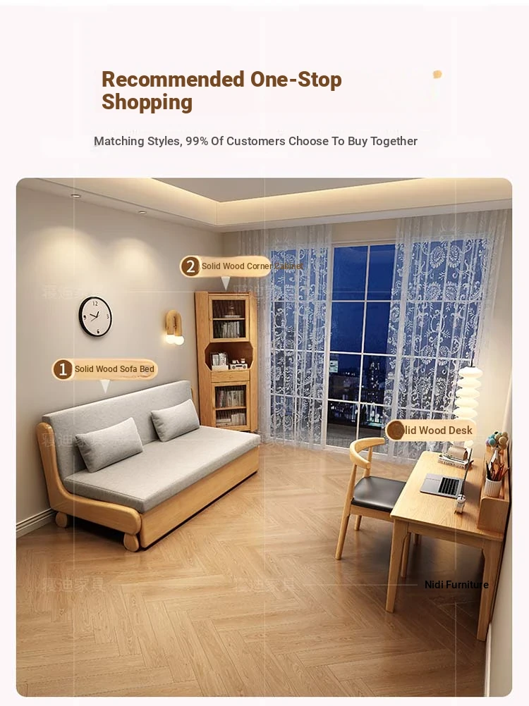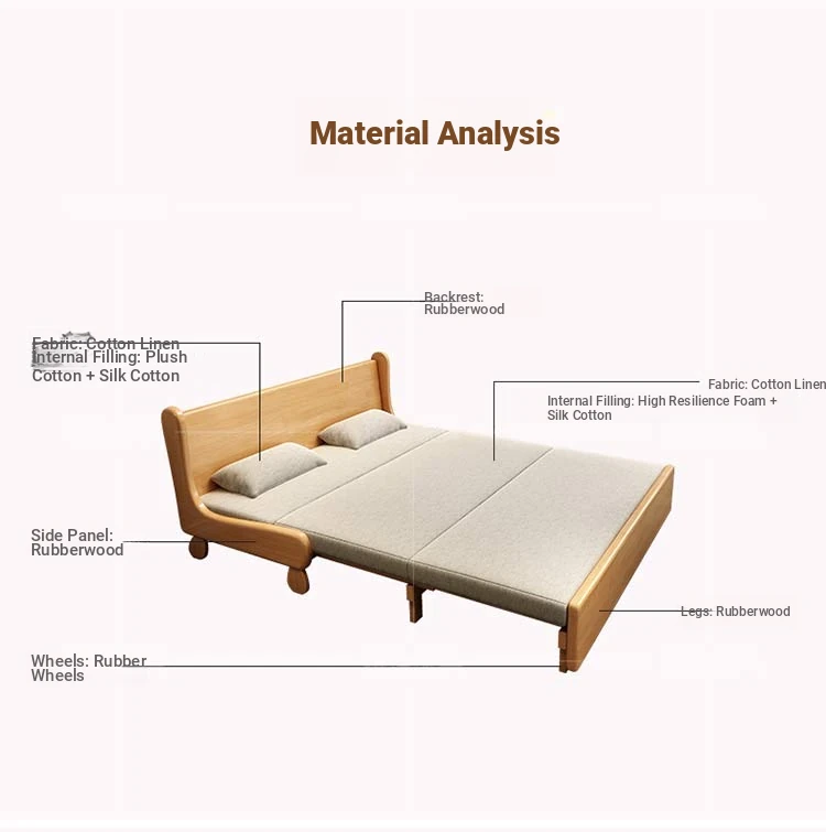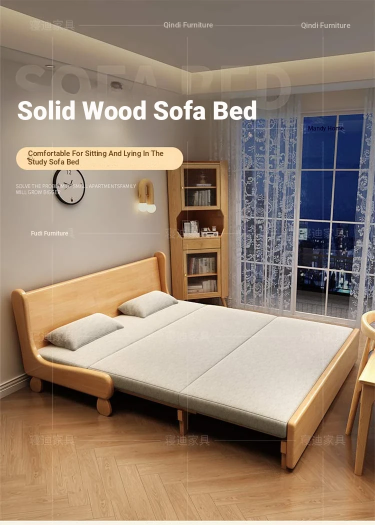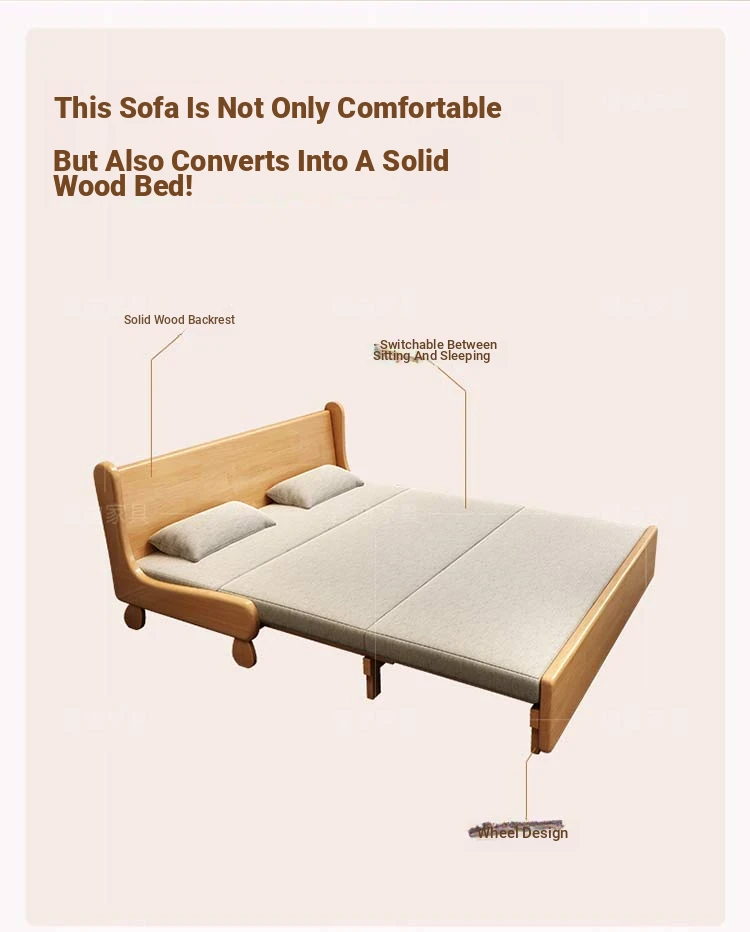 2025 New Style Multifunctional Solid Wood Sofa Bed - Foldable, Dual-purpose Design Perfect for Small Spaces, Ideal for Hotels and Home Offices