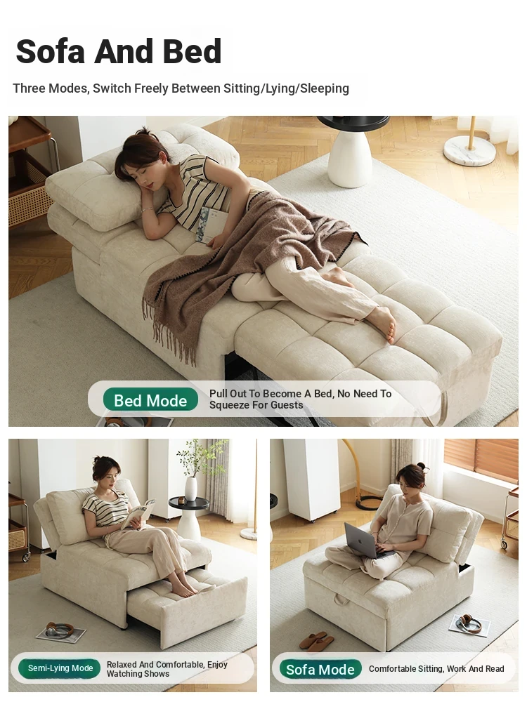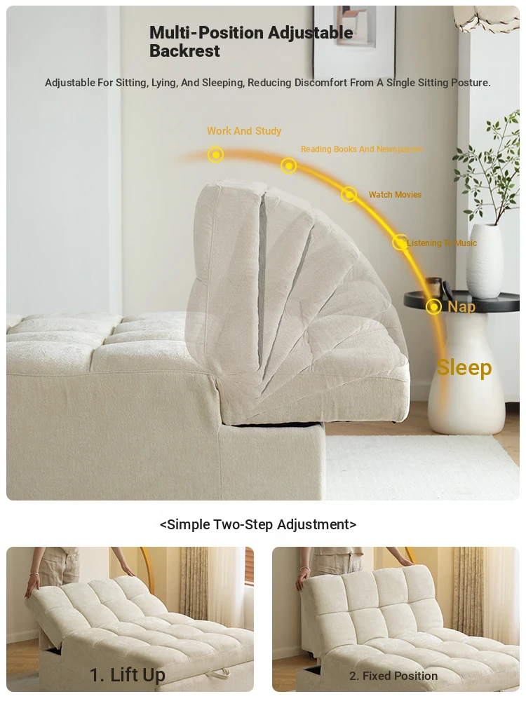 Adjustable Backrest Sofa Bed - Versatile Folding Sofa for Small Spaces, Perfect for Home Offices, Ideal for Couples and Singles, Multifunctional Pull-Out Design