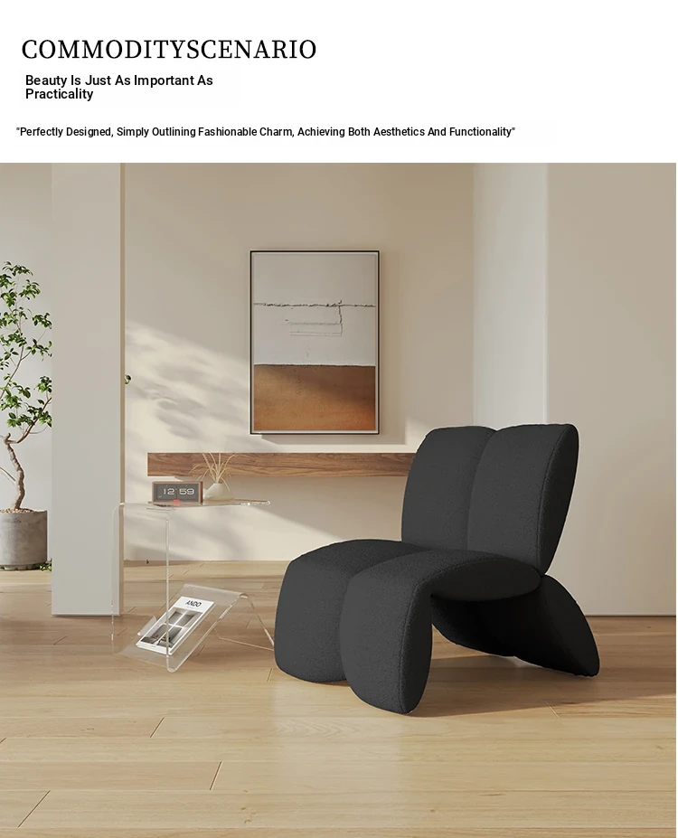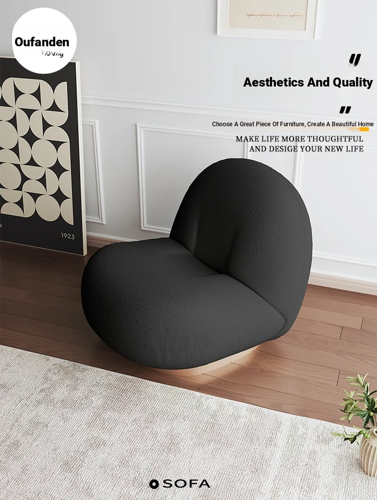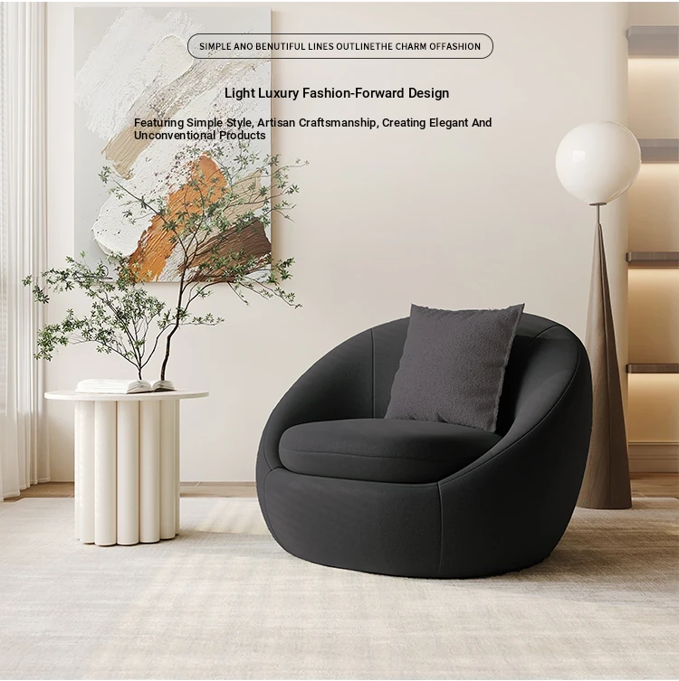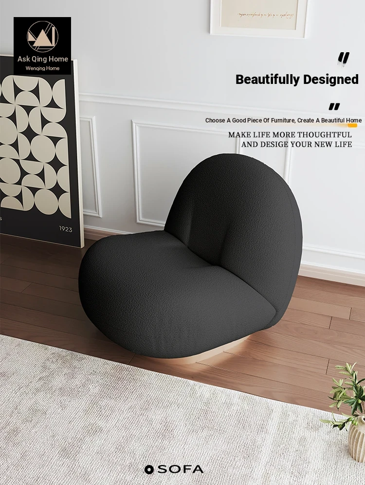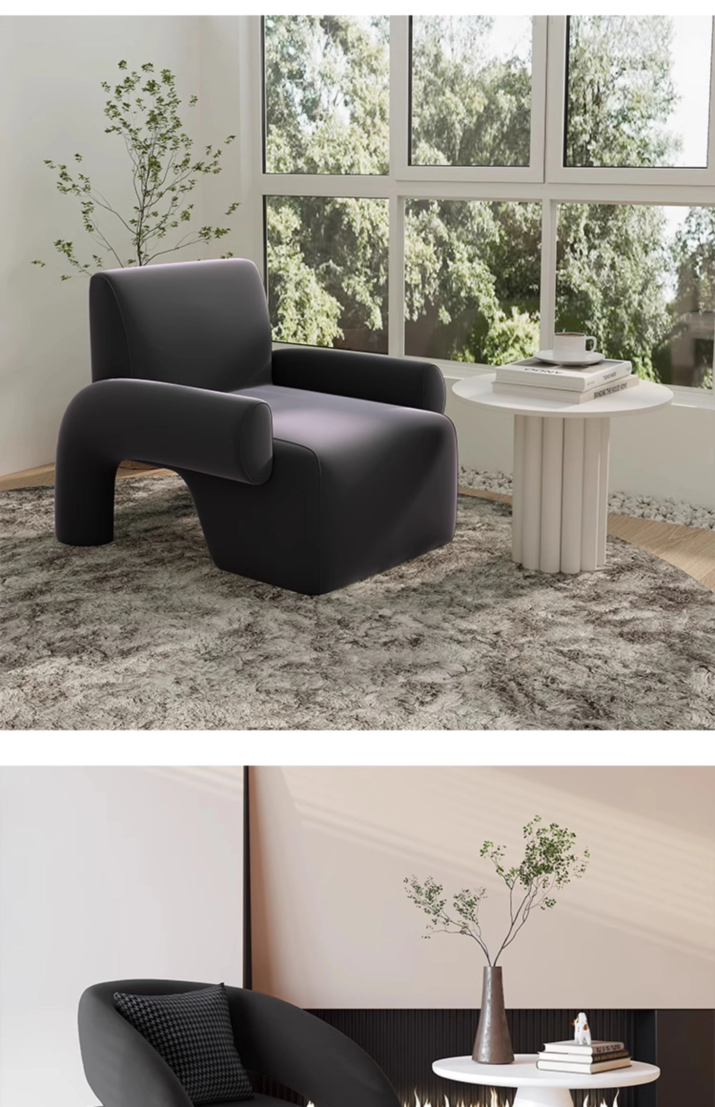 Black Single Lazy Sofa Chair for Living Room and Balcony - Stylish, High-End, Creative Design for Relaxation and Leisure, Perfect for Bedroom and Trendy Spaces.