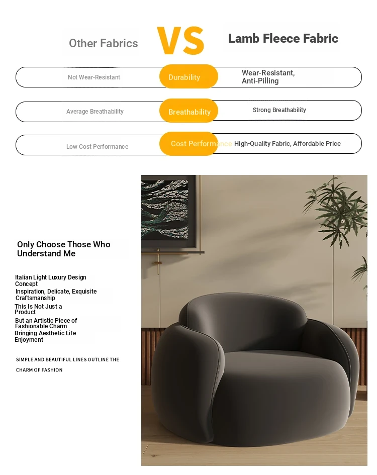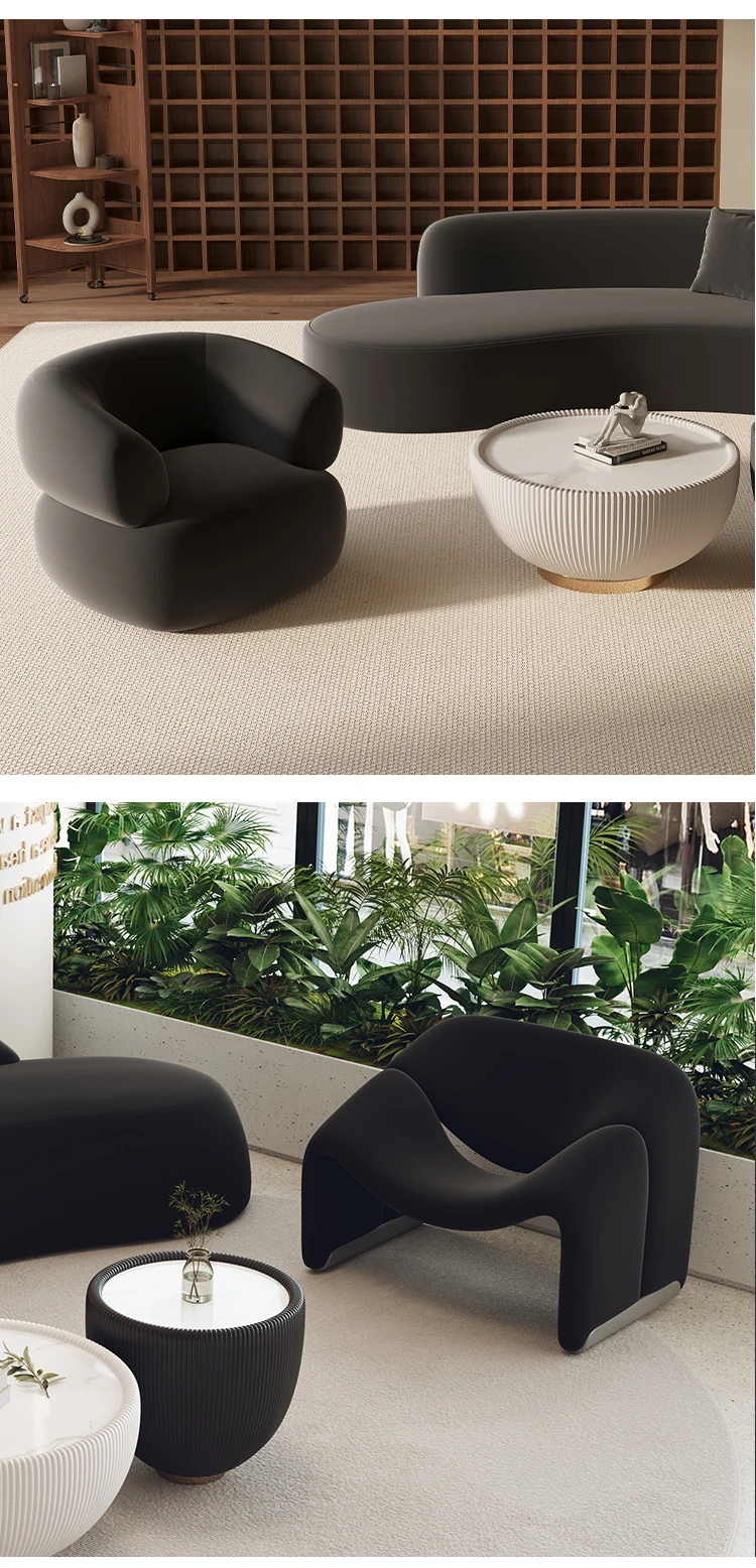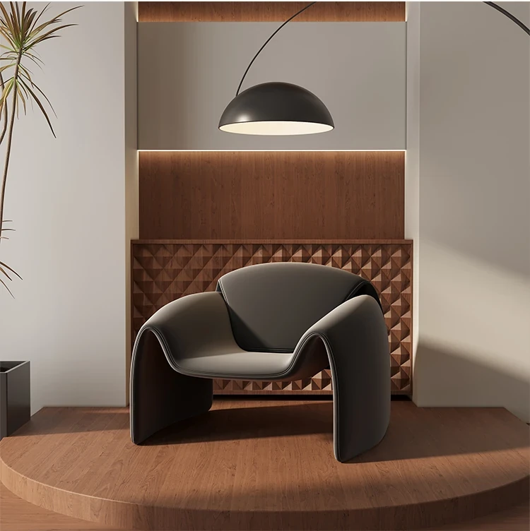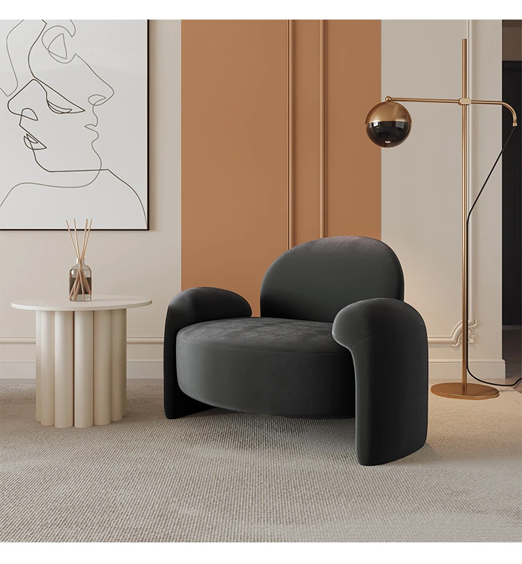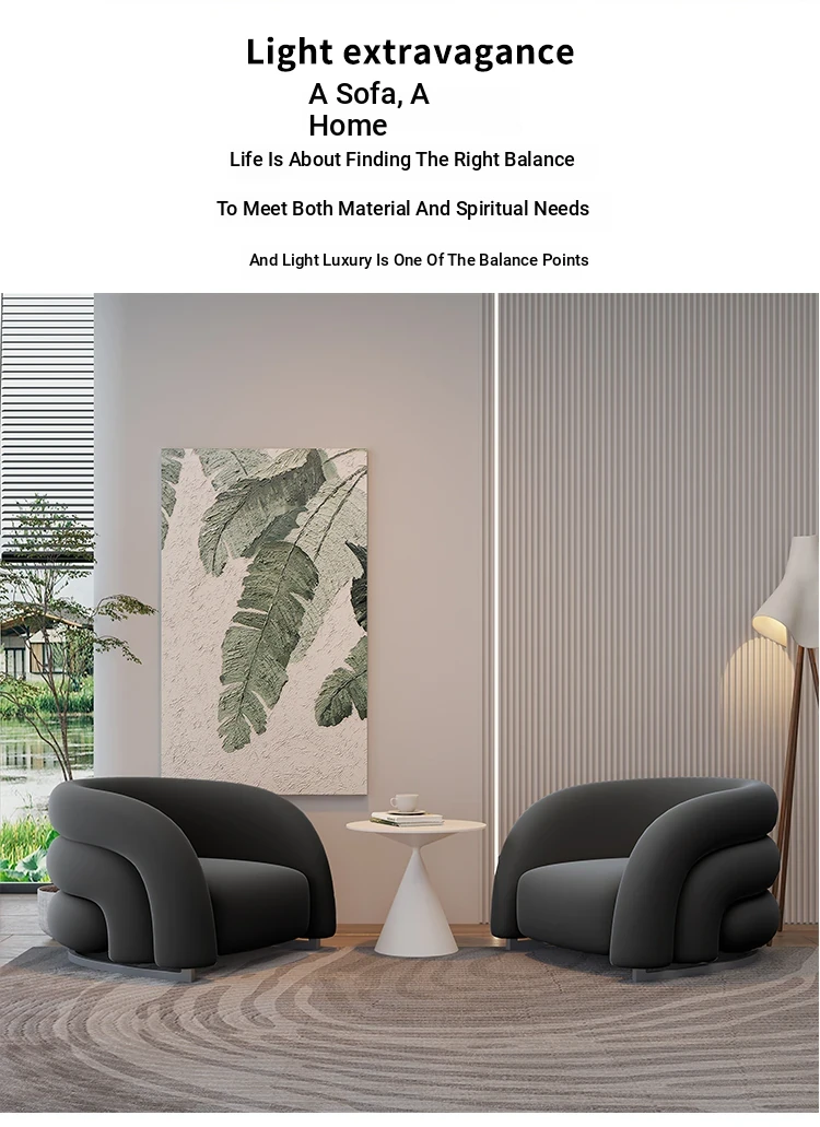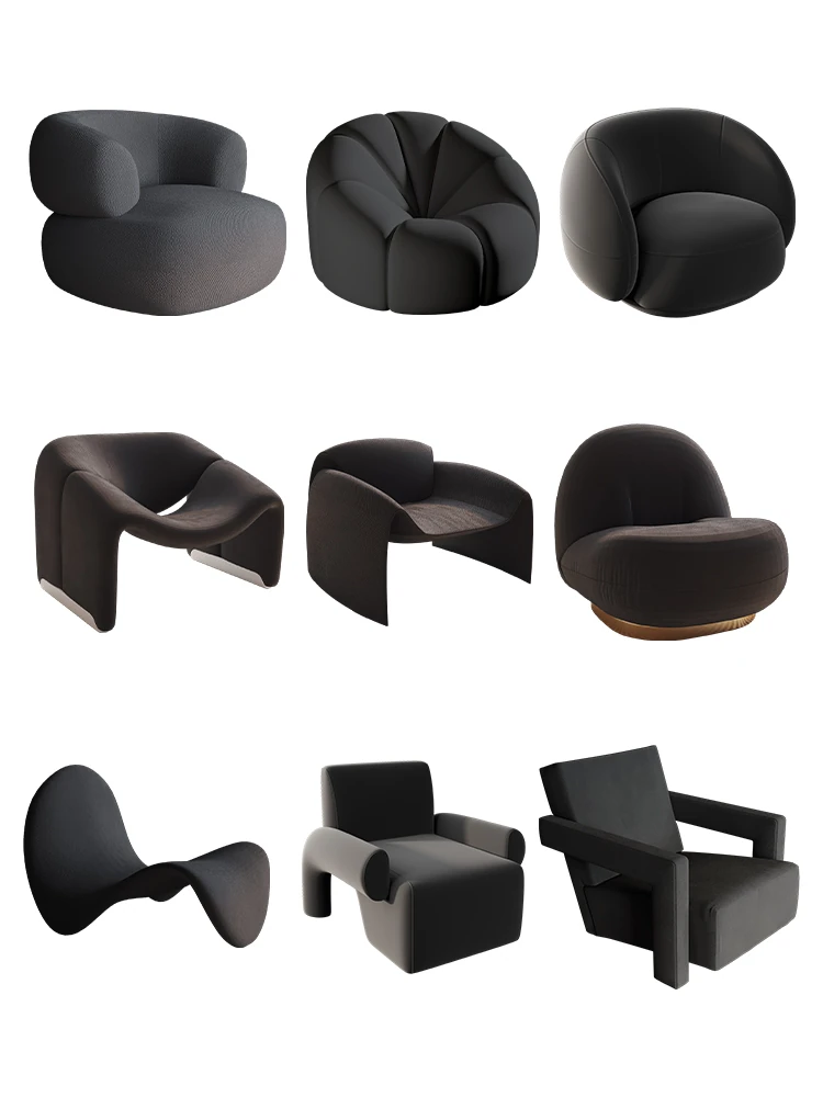 Black Single Lazy Sofa Chair for Living Room and Balcony - Stylish, High-End, Creative Design for Relaxation and Leisure, Perfect for Bedroom and Trendy Spaces.