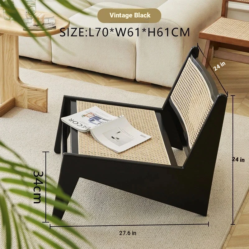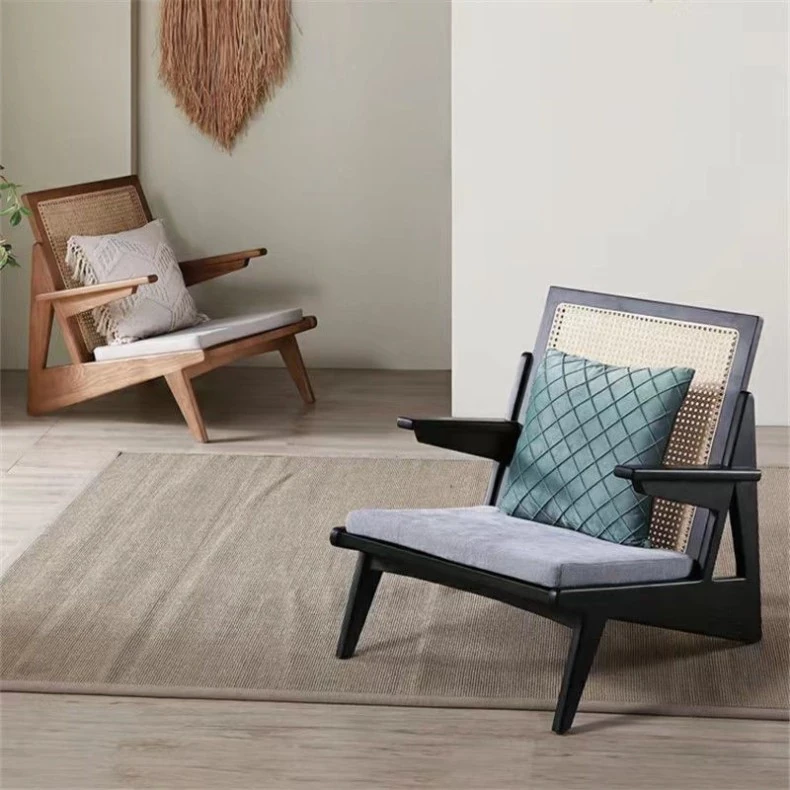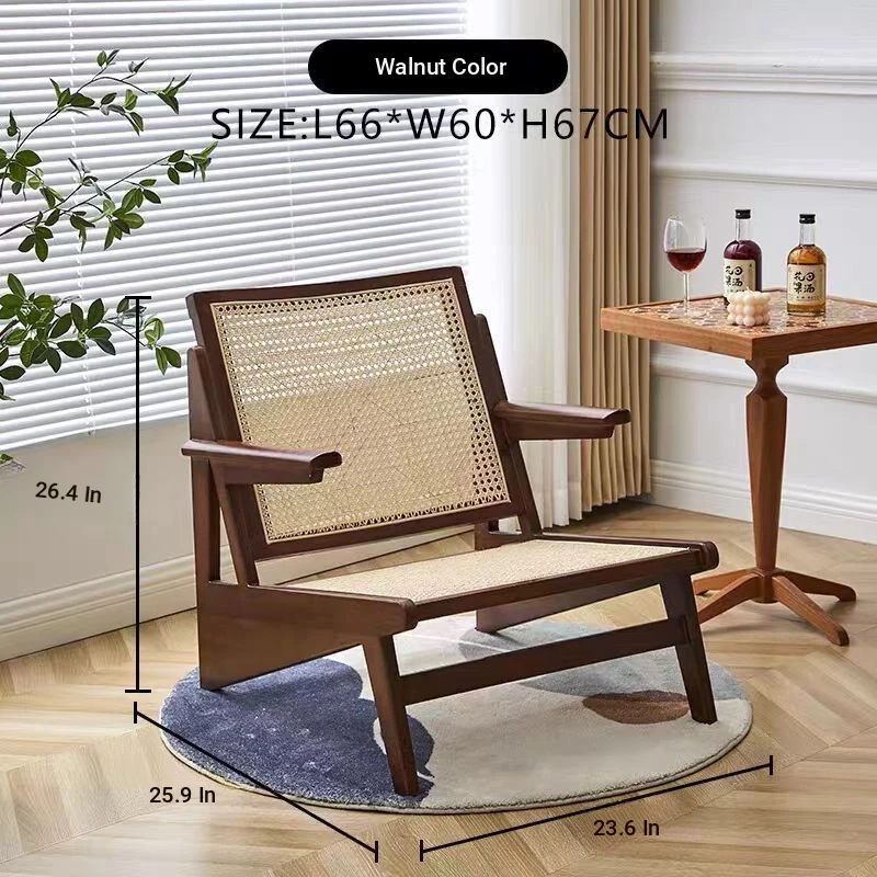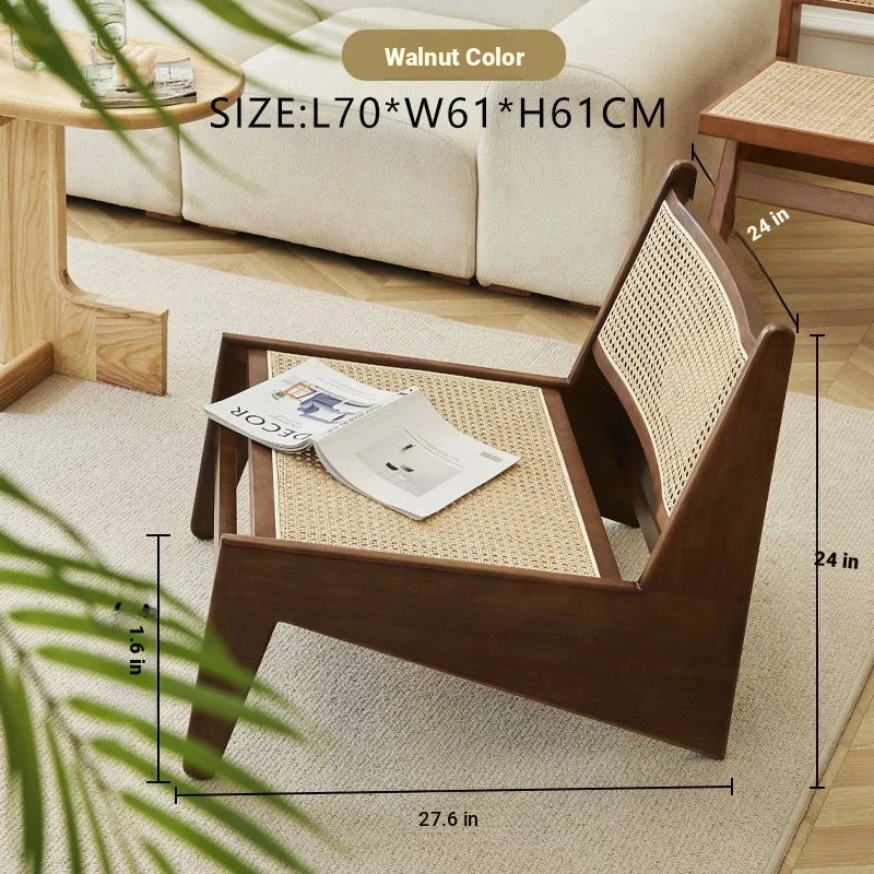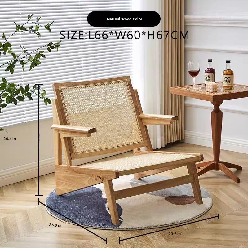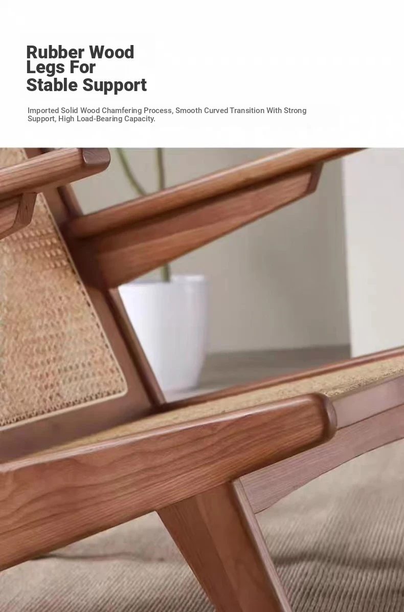 Casual Rattan Kangaroo Chair - Stylish Wooden Lounge Chair for Home, Hotel, or Balcony. Perfect for Minimalist Spaces, with Armrests and a Touch of Japanese Design. Ideal for Cozy Getaways and Relaxing Moments.