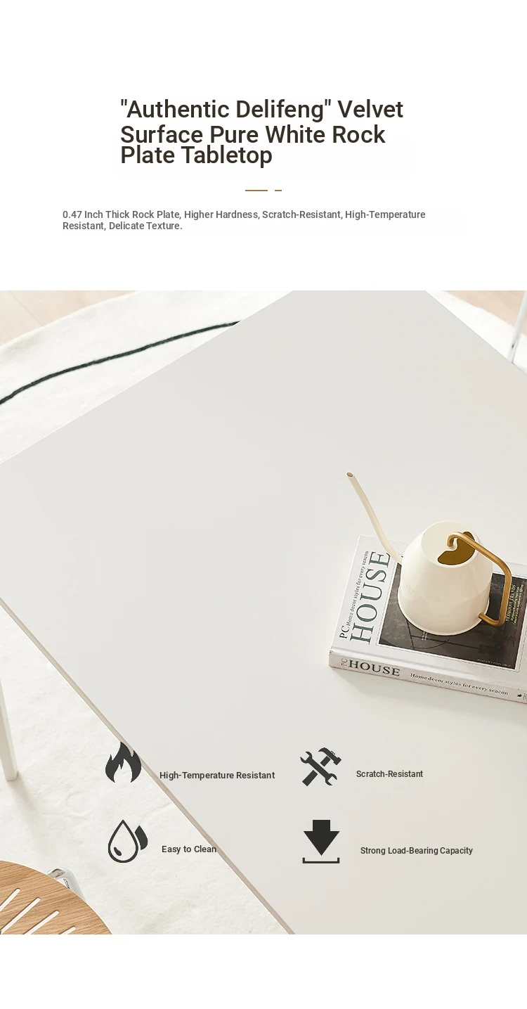 Chic Italian-style Pure White Dining Table - Rectangular Design for Small Spaces, Modern Minimalist Luxury