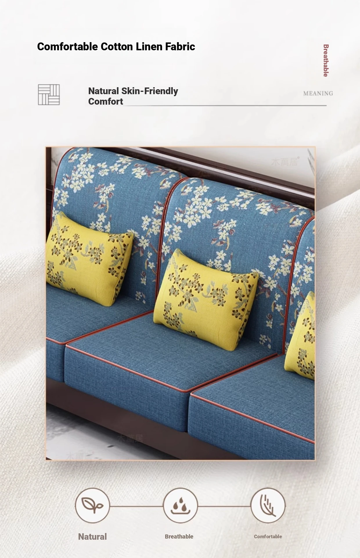 Classic Chinese Solid Wood Sofa for Living Room - Zen Style, MDSF.036 Model, Elegant 3-Seater with Versatile Corner Design, Perfect for Home Decor