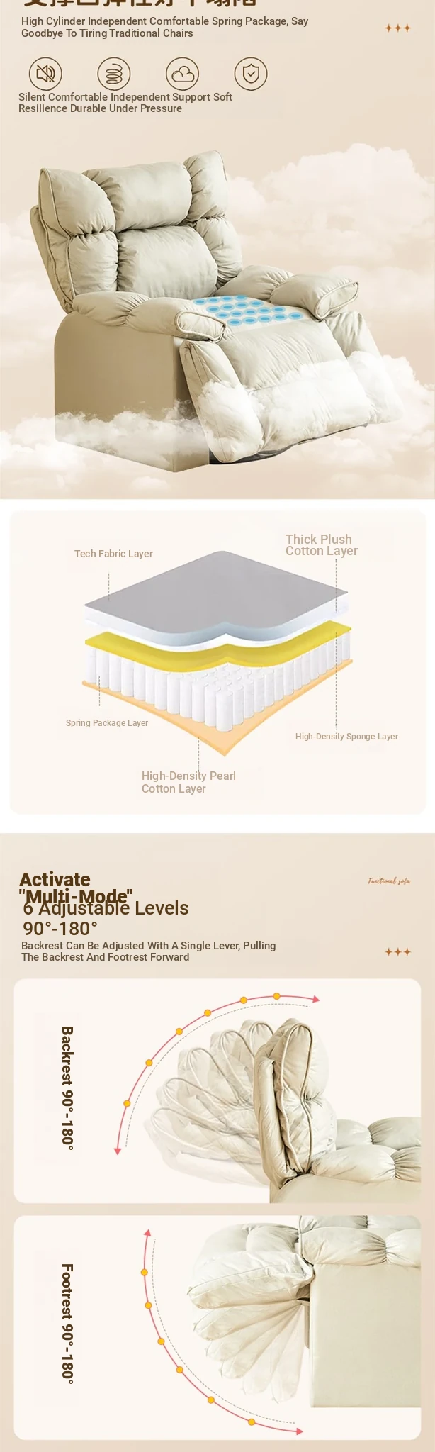 Convertible Fabric Sofa Chair for Living Room - Cozy Reclining Lounge Chair for Small Spaces, Perfect for Relaxation and Sleep, Ideal for Urban Homes