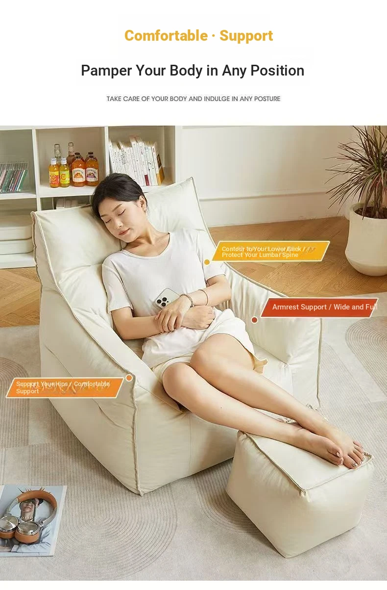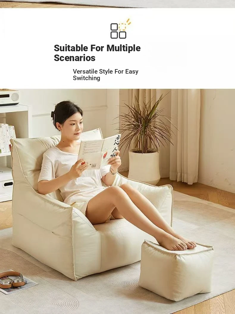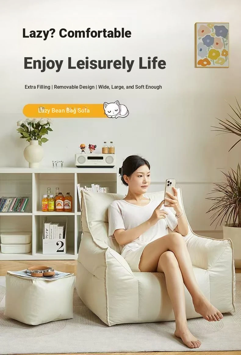 Cozy Bean Bag Sofa - Versatile Lounger for Relaxation and Sleep, Perfect for Bedroom, Living Room, or Balcony - Creamy Style Single Sofa Chair