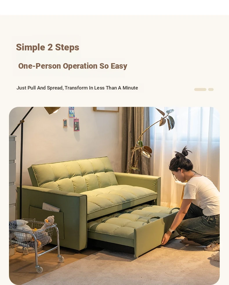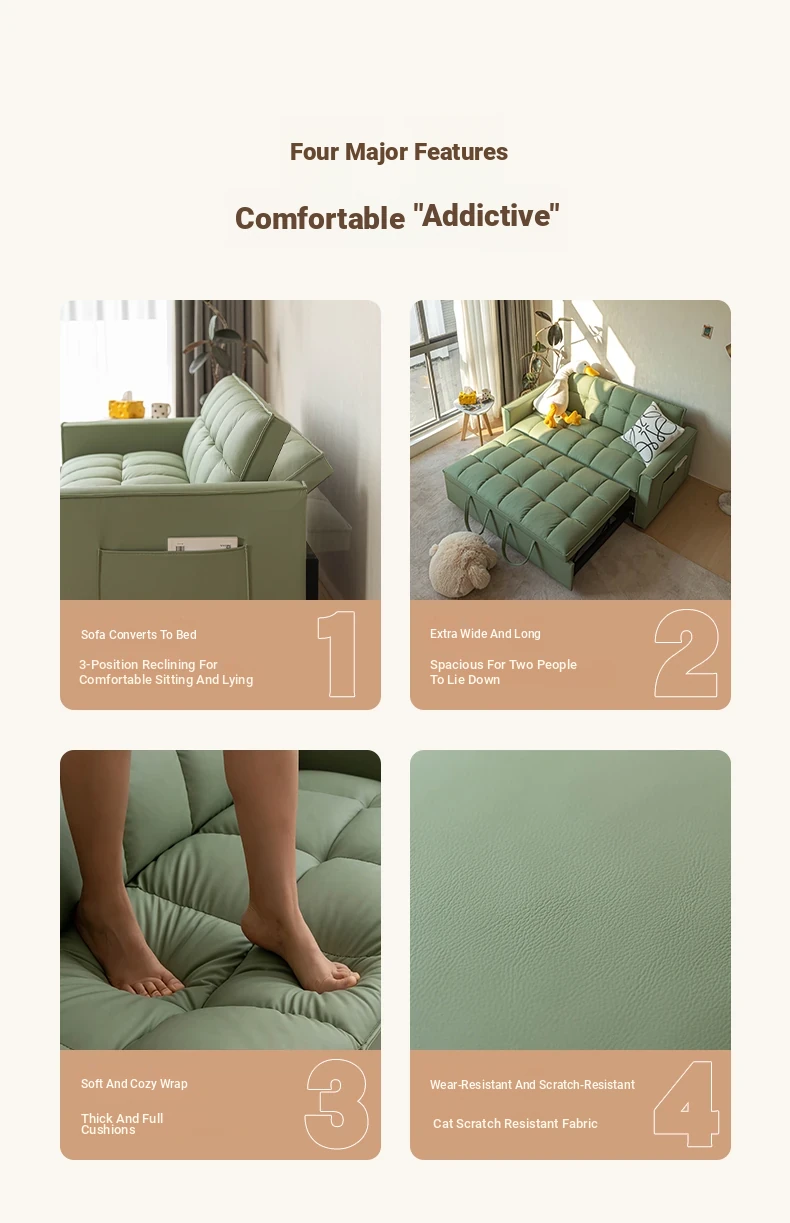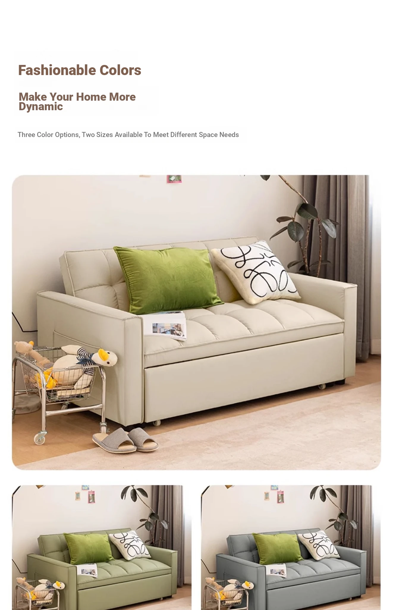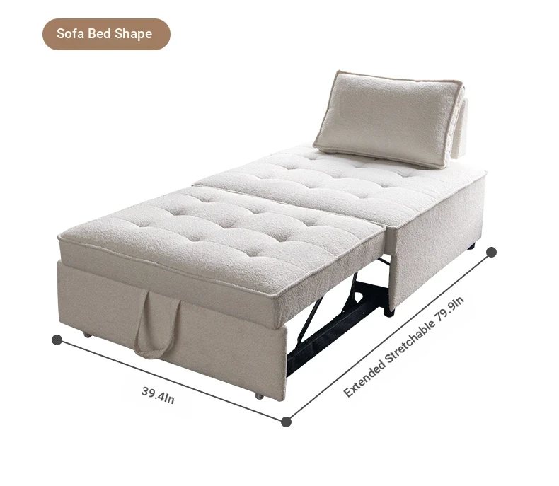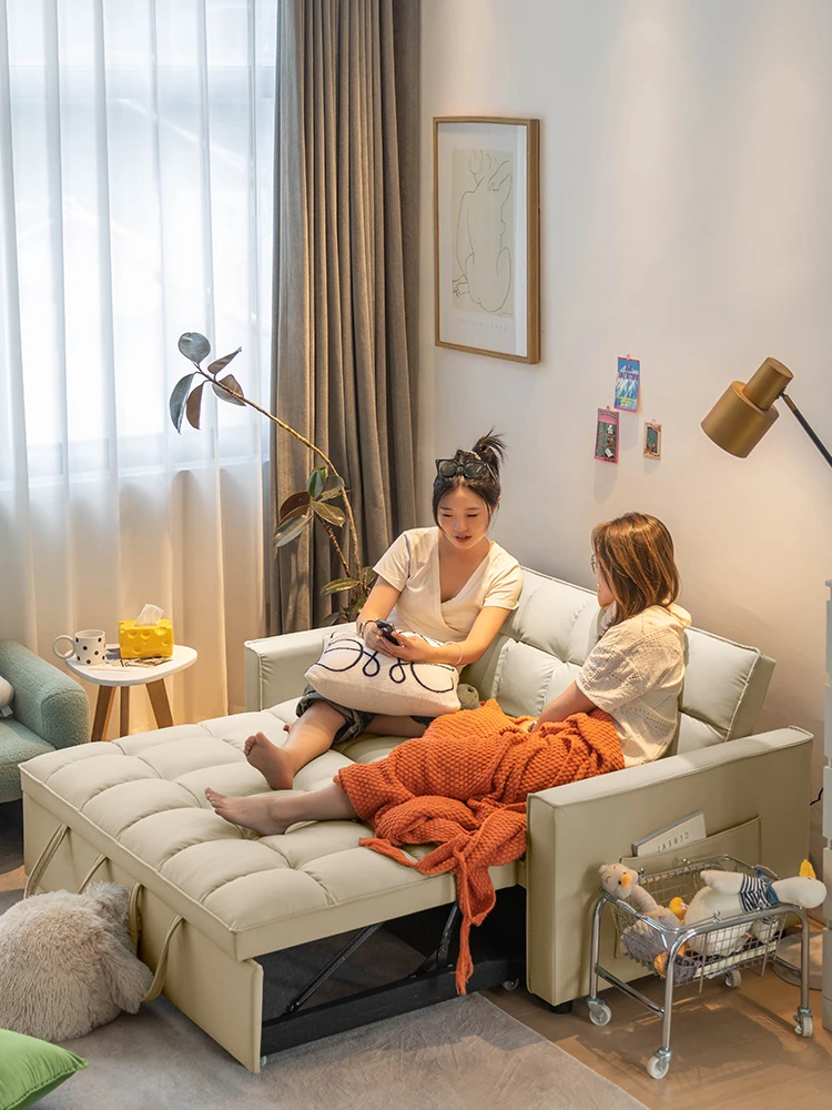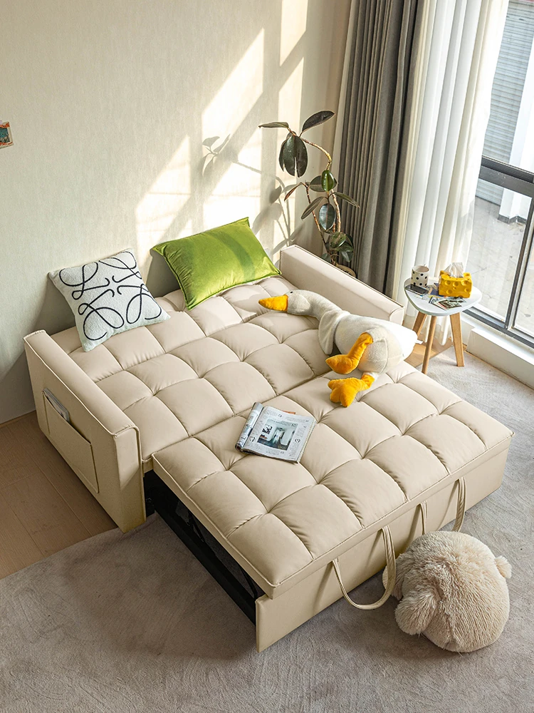Cream Fabric Sofa Bed - Multifunctional Foldable Couch for Small to Medium Living Rooms, Perfect for Couples and Compact Spaces