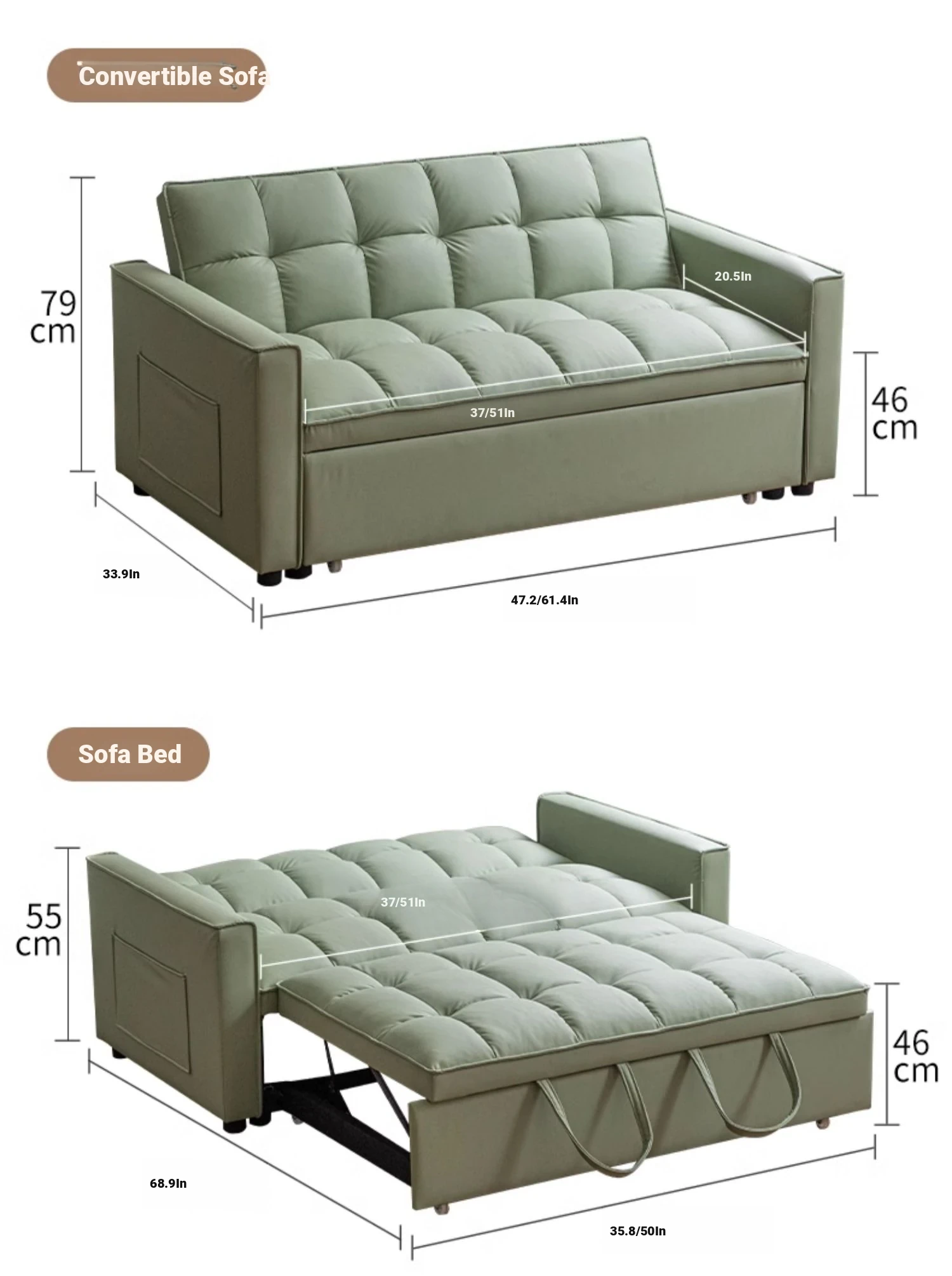 [Flagship Cushion thickened] 2385 Bean Sand Green Sofa Bed 61.42 in