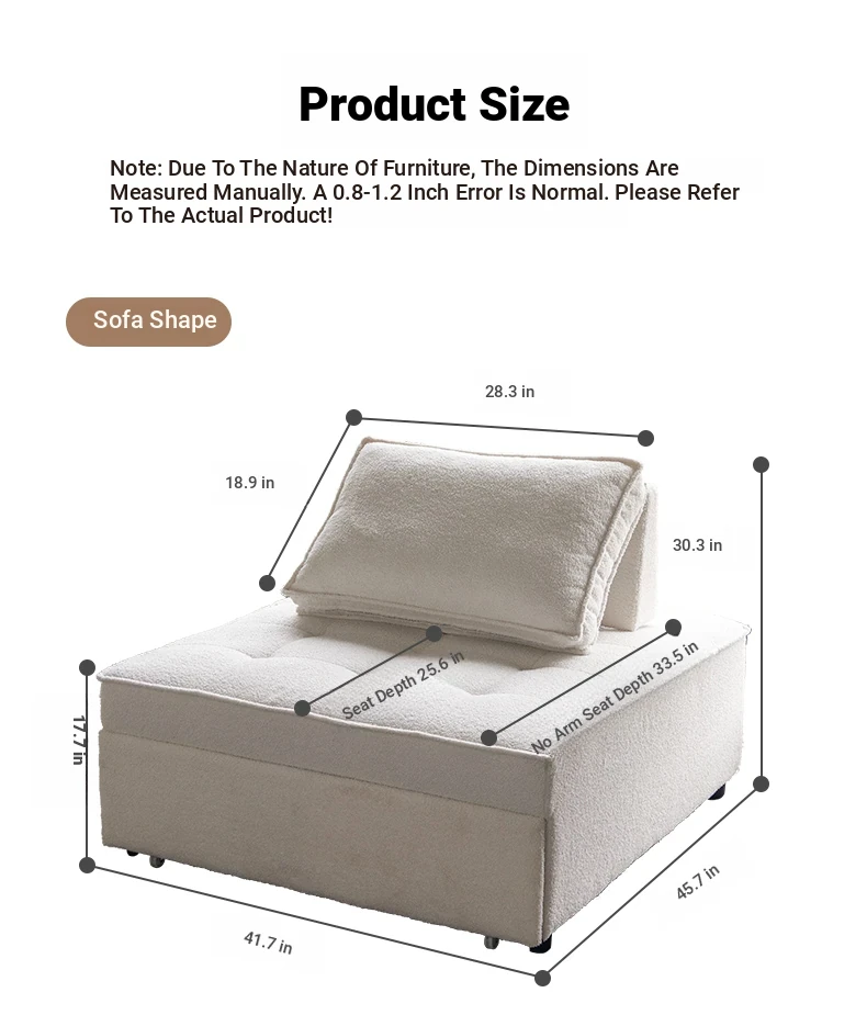 [Flagship cushion thickened] 2385 creamy-white sofa bed 47.24 ins