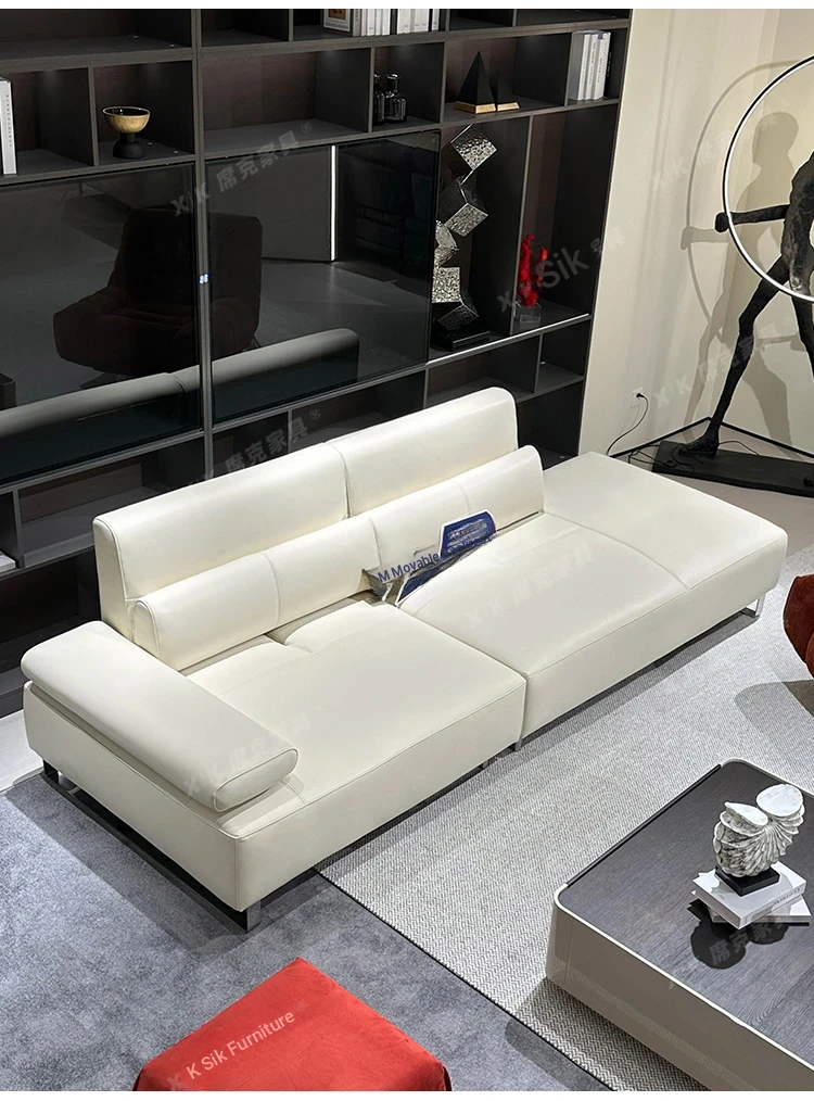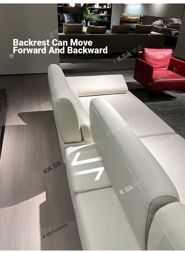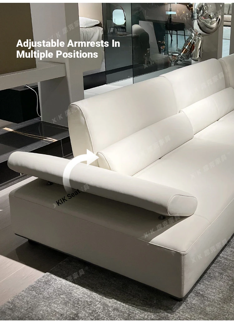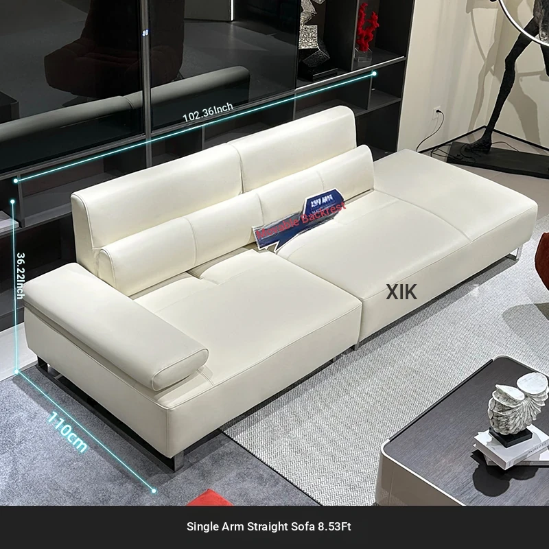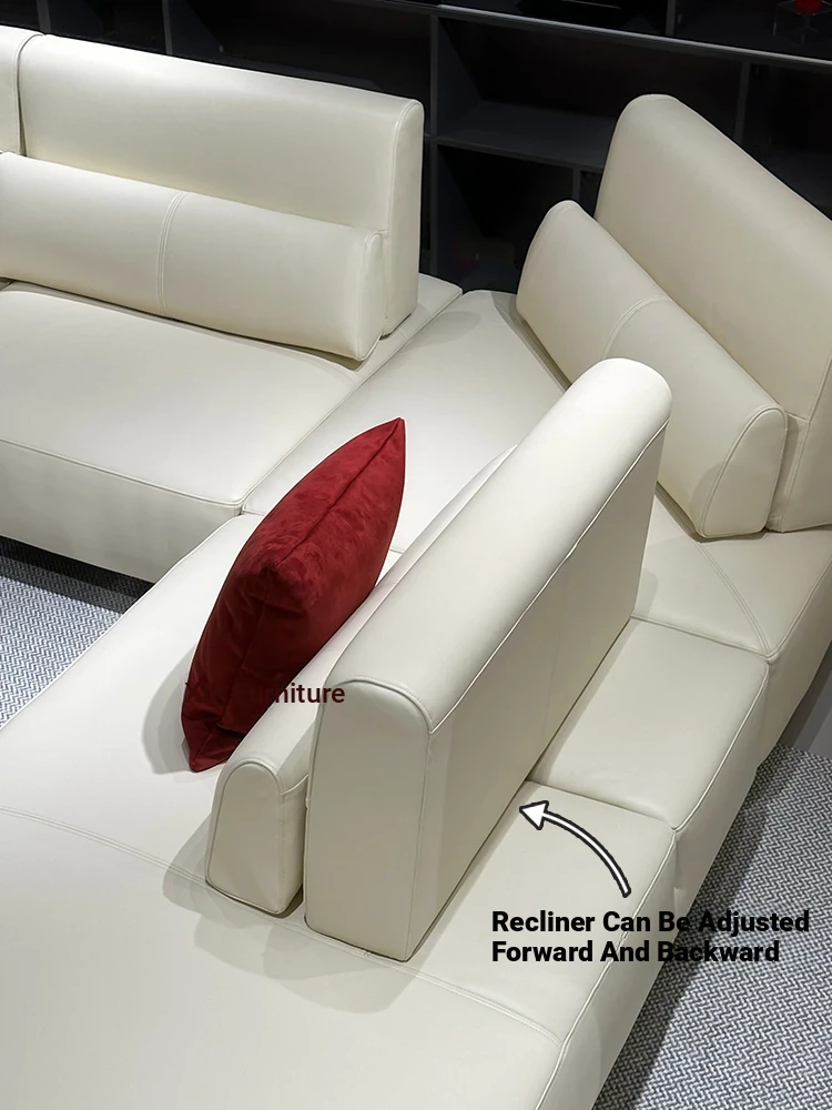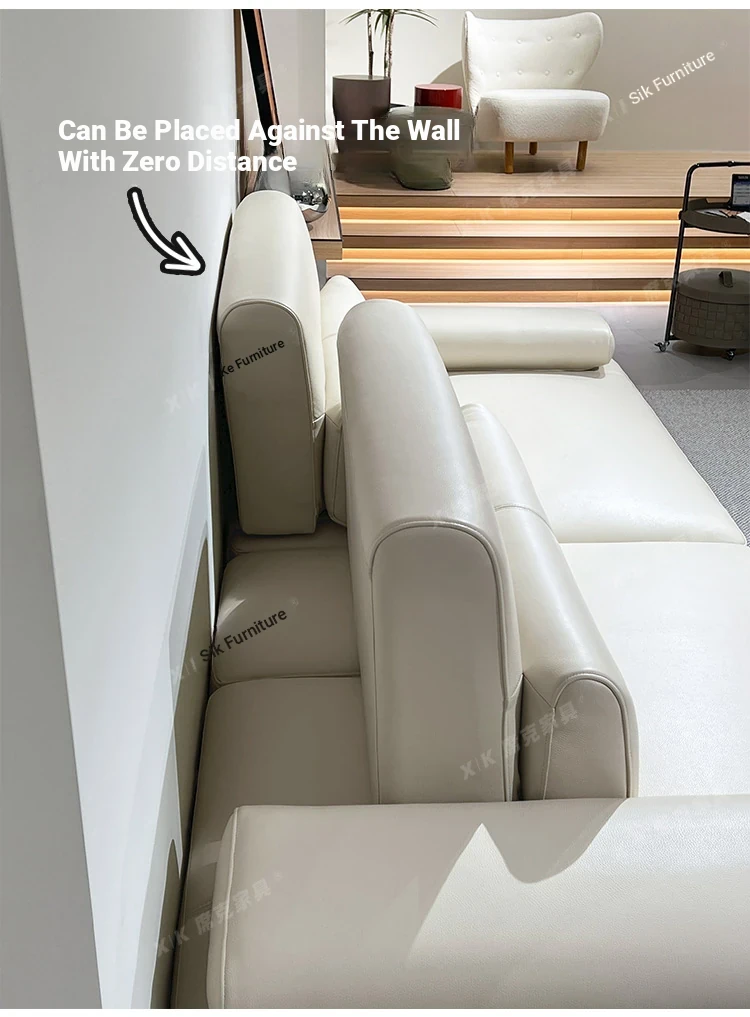 Cream Wind Small Space Sofa with Single Armrest - Straight Back, Movable Headrest, Made of Premium Top Grain Leather, Available Both Online and Offline