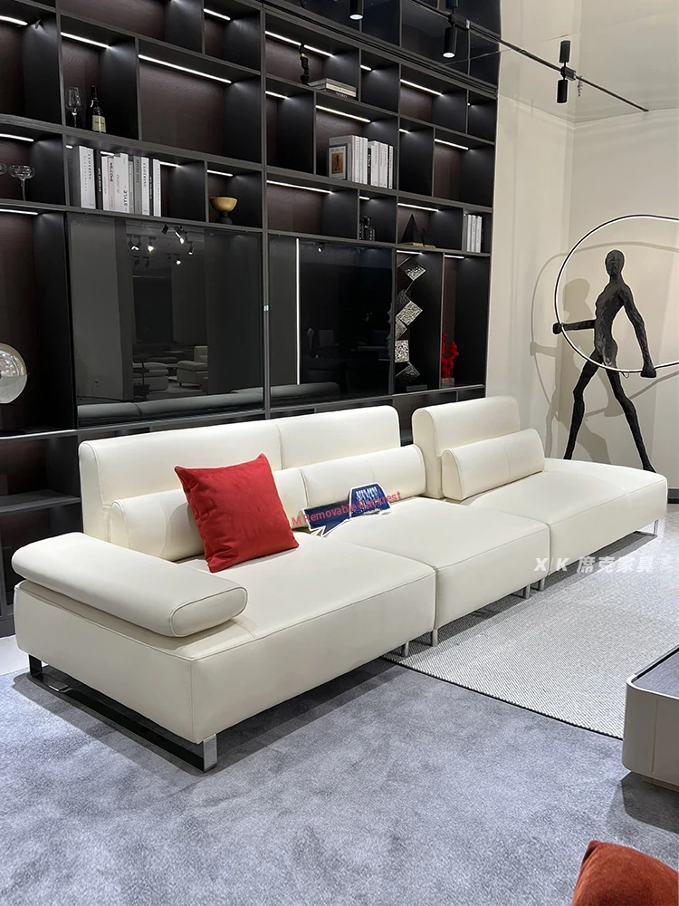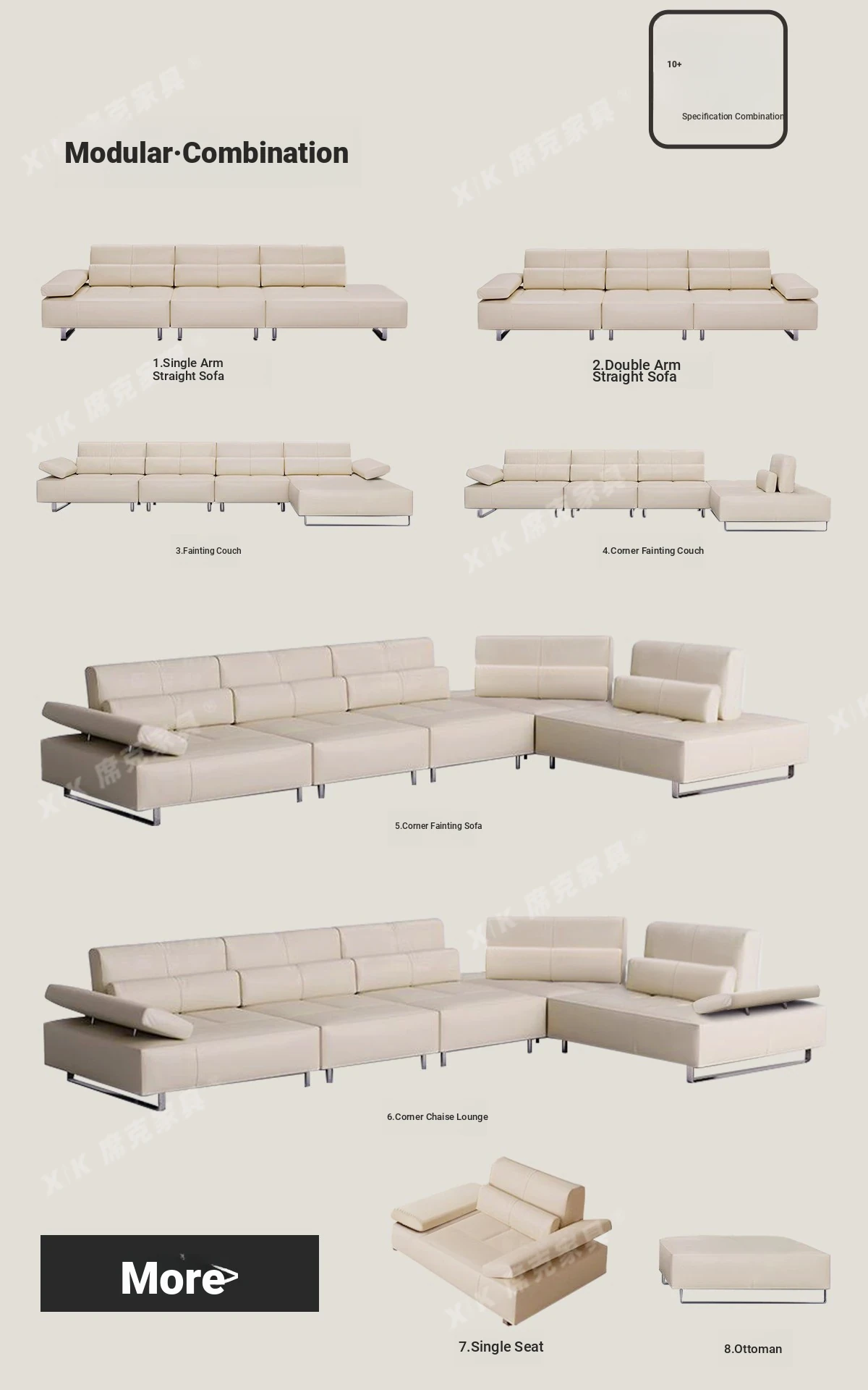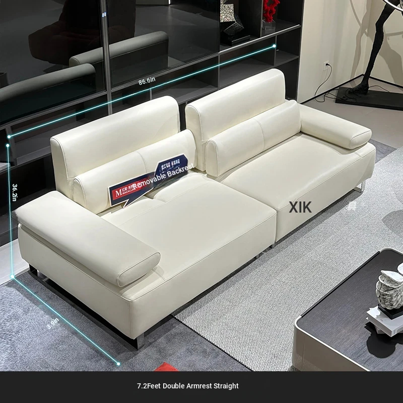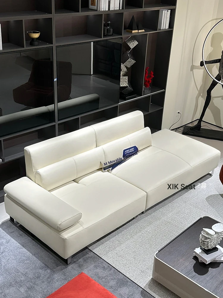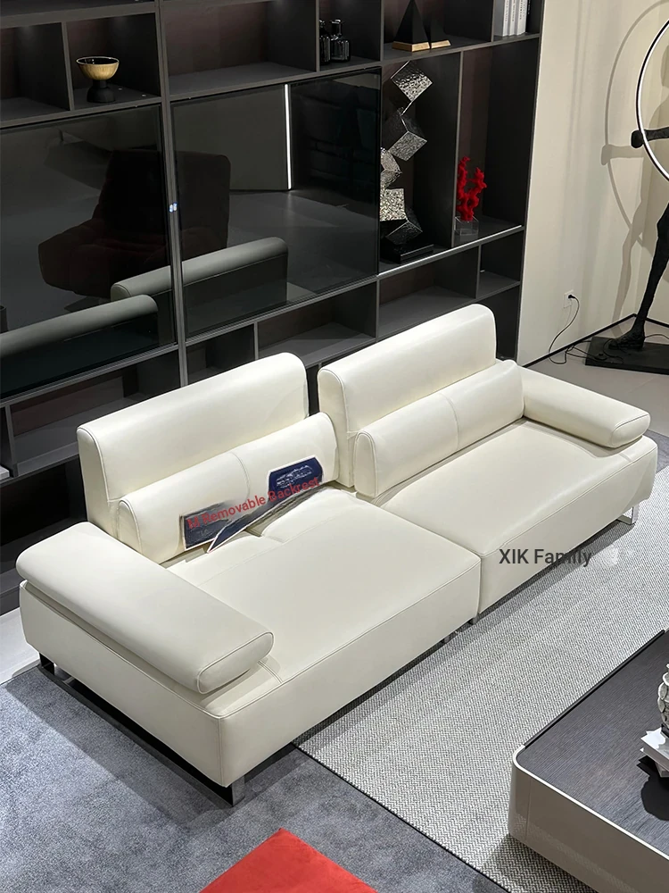 Cream Wind Small Space Sofa with Single Armrest - Straight Back, Movable Headrest, Made of Premium Top Grain Leather, Available Both Online and Offline