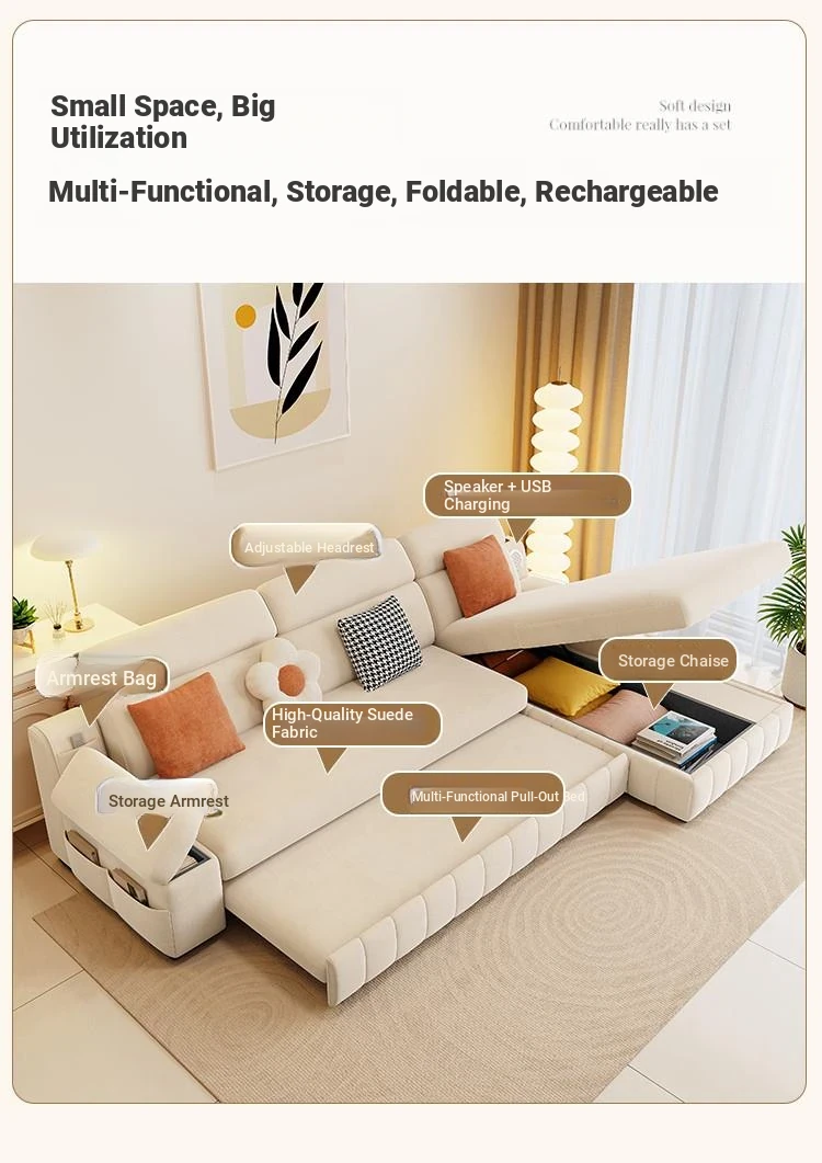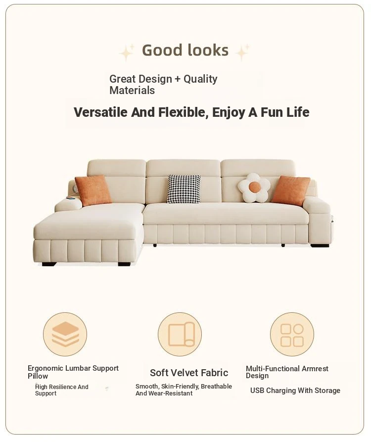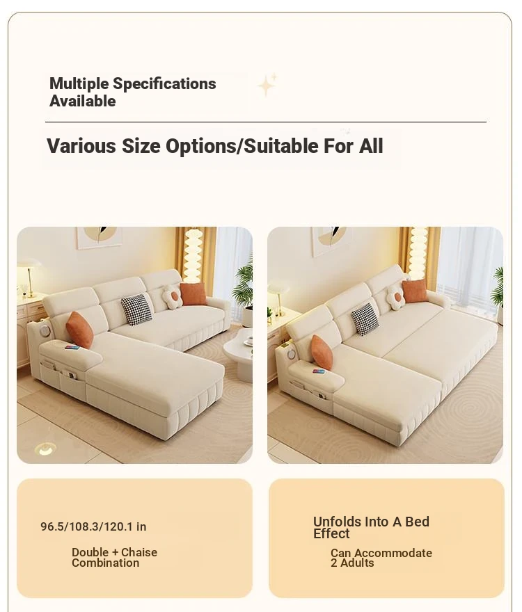 Creamy Wind Multifunctional Folding Sofa Bed - Trendy Chaise Lounge for Small Spaces, Perfect for Your Living Room - New 2025 Style