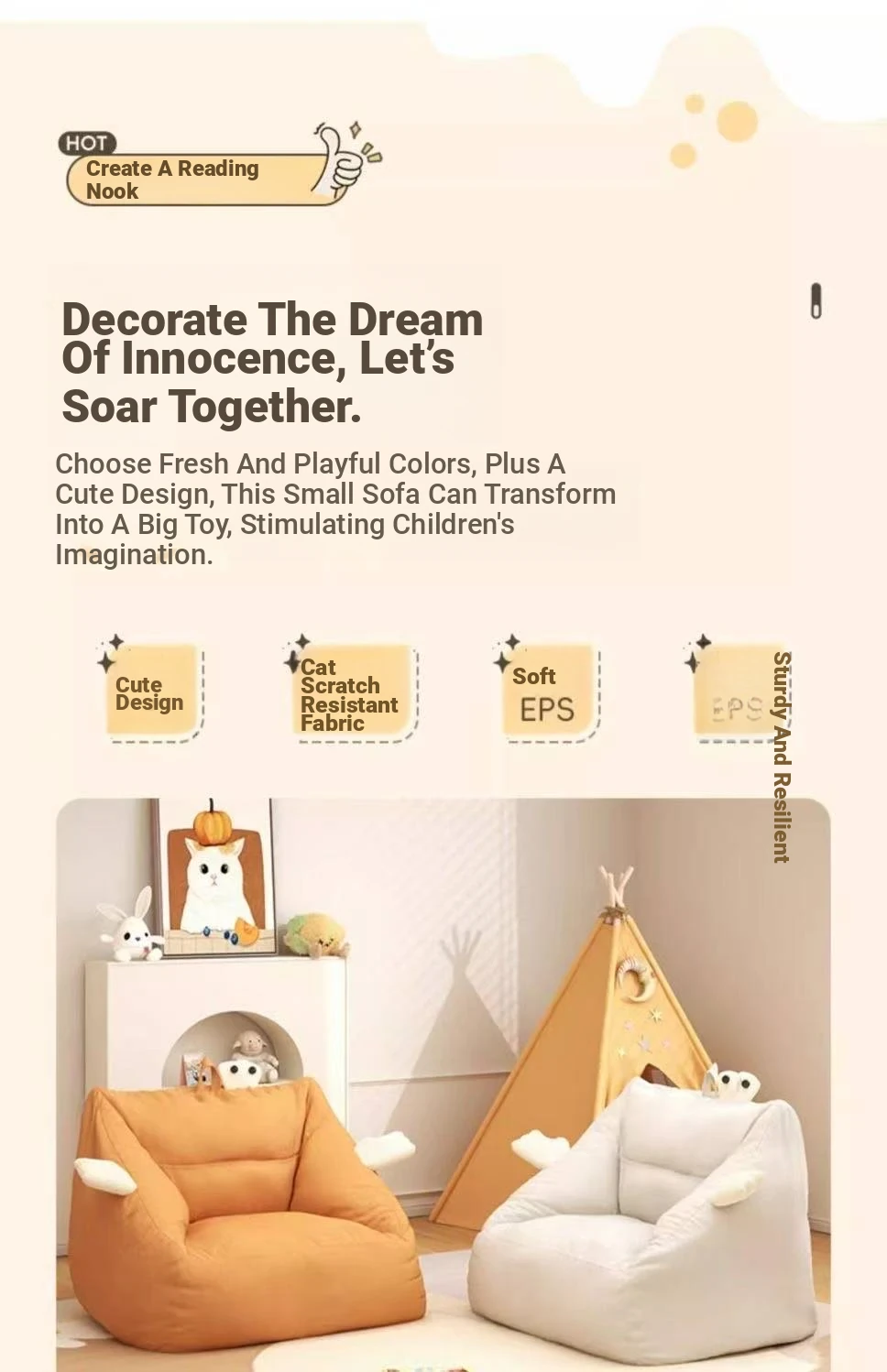 Cute Children's Bean Bag Sofa - Perfect for Reading Nooks and Baby Rooms, Cozy and Comfortable for Little Ones to Lounge and Play! Ideal Infant Sofa Chair for Relaxation and Fun!