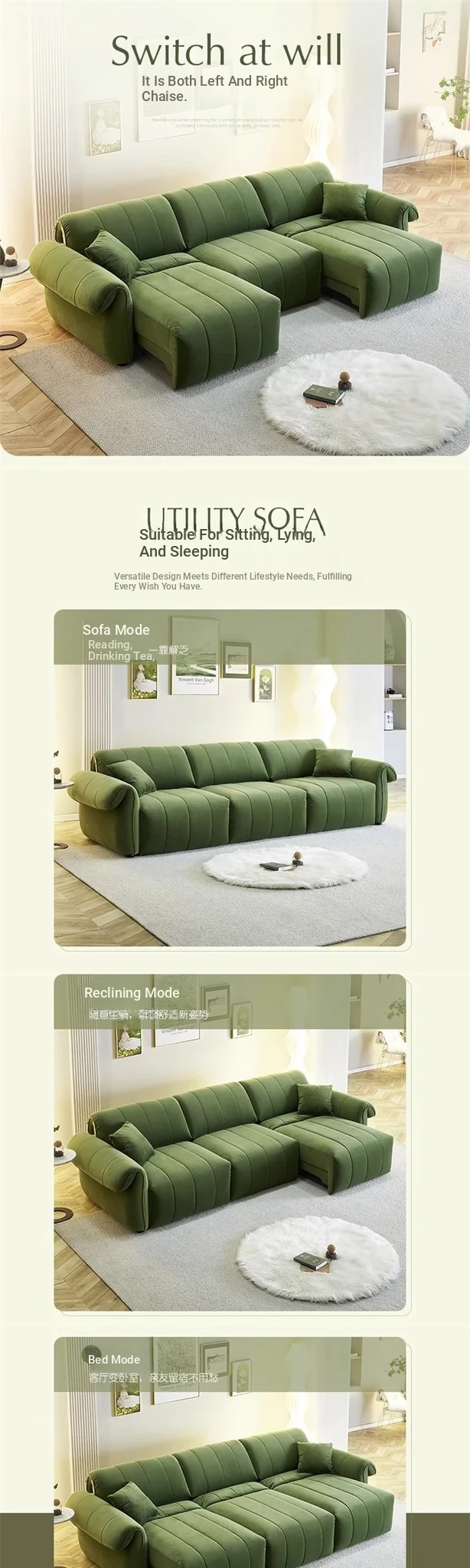 Electric Function Sofa Bed - Minimalist Octopus Design, Expandable Wabi-Sabi Style in Deep Green, Perfect for Your Living Room!
