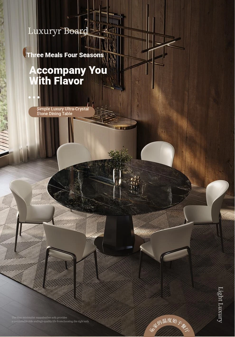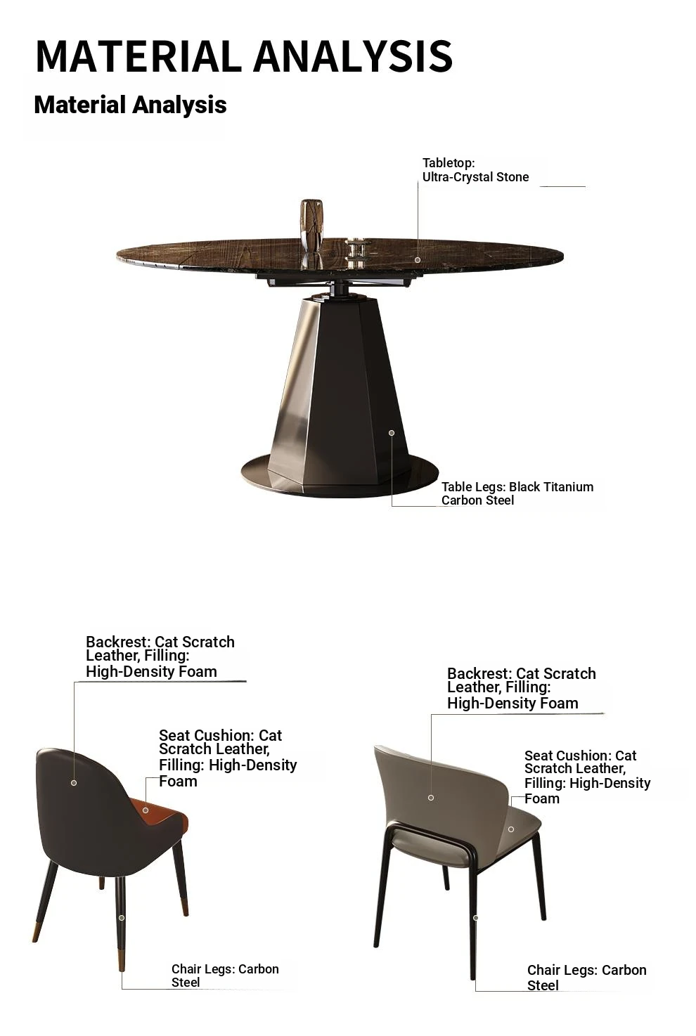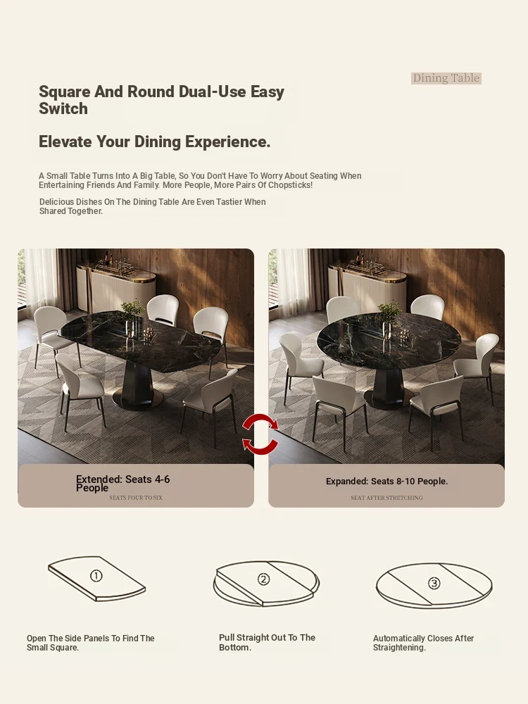 Elegant Italian Style Expandable Round-Square Dining Table and Chair Set for Small Spaces – Luxurious Ultra-Crystal Stone Dining Furniture for Home – Perfect for Cozy Meals and Gatherings