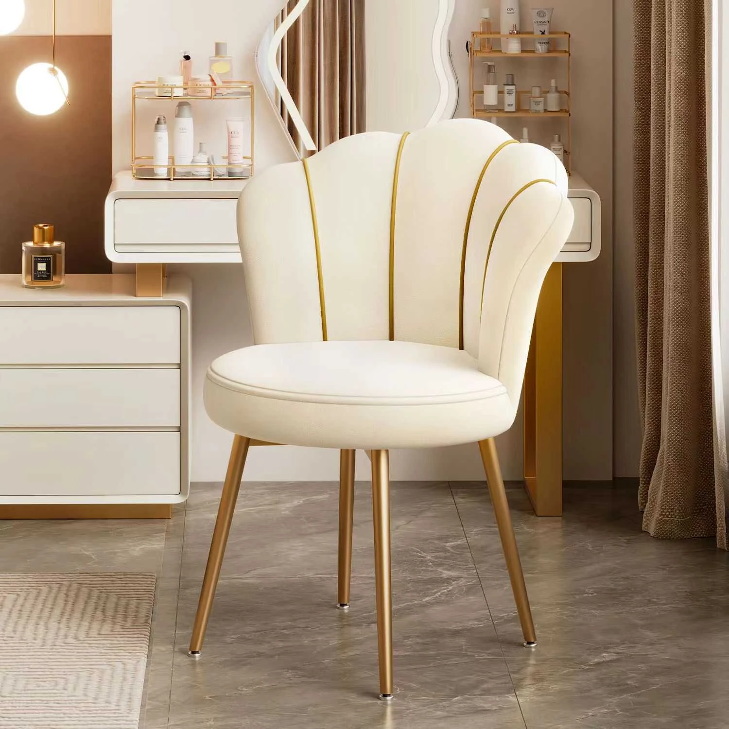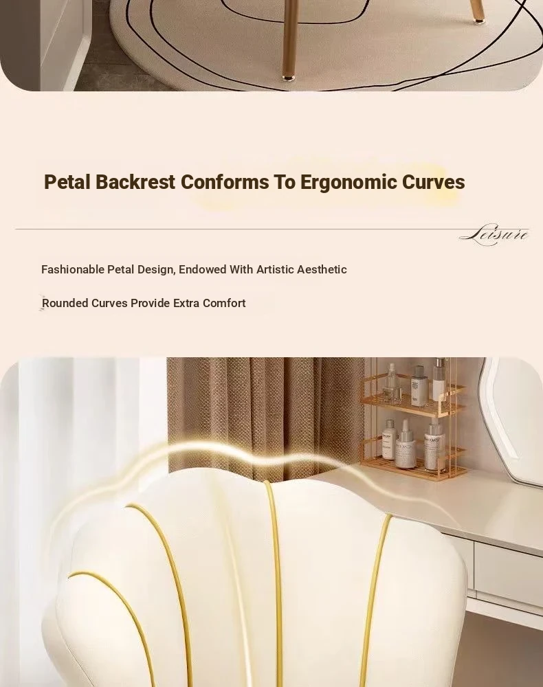 Elegant Makeup Chair for Bedroom - Modern Minimalist Vanity Stool, Rotating Petal Design, Perfect for Your Dressing Table - Stylish and Functional Home Décor