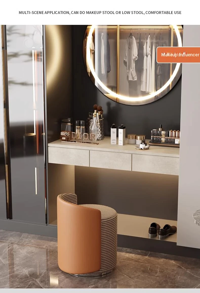 Elegant Makeup Chair for Master Bedroom - Stylish Ins-inspired Vanity Stool with Backrest, Perfect for Home Use, Minimalist Design with a Touch of Luxury, Ideal for Your Glam Room.