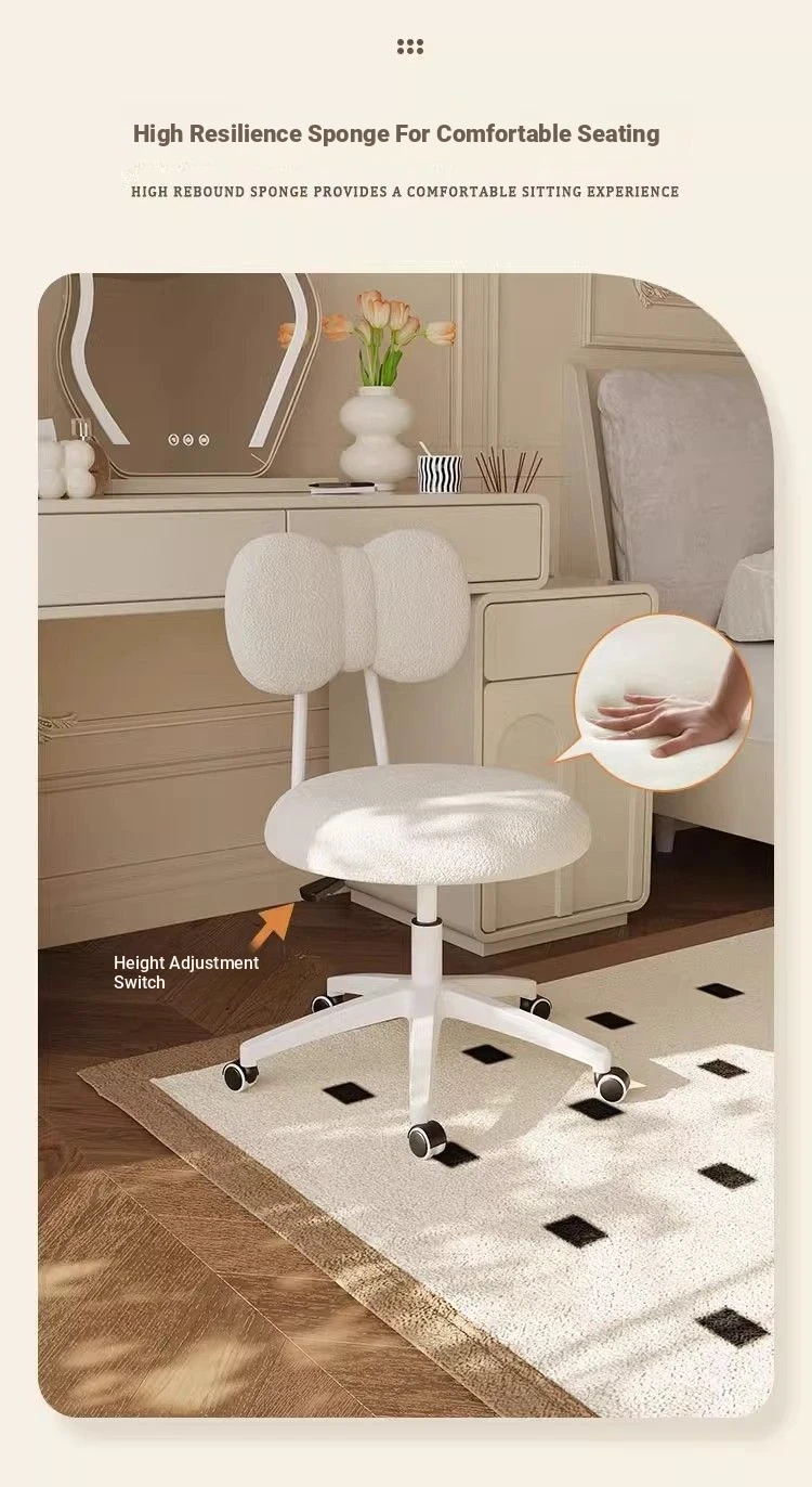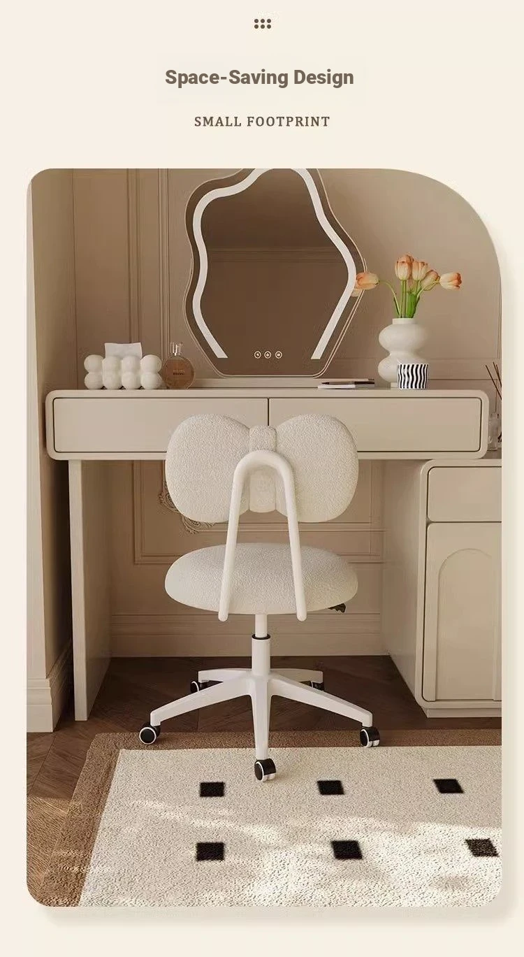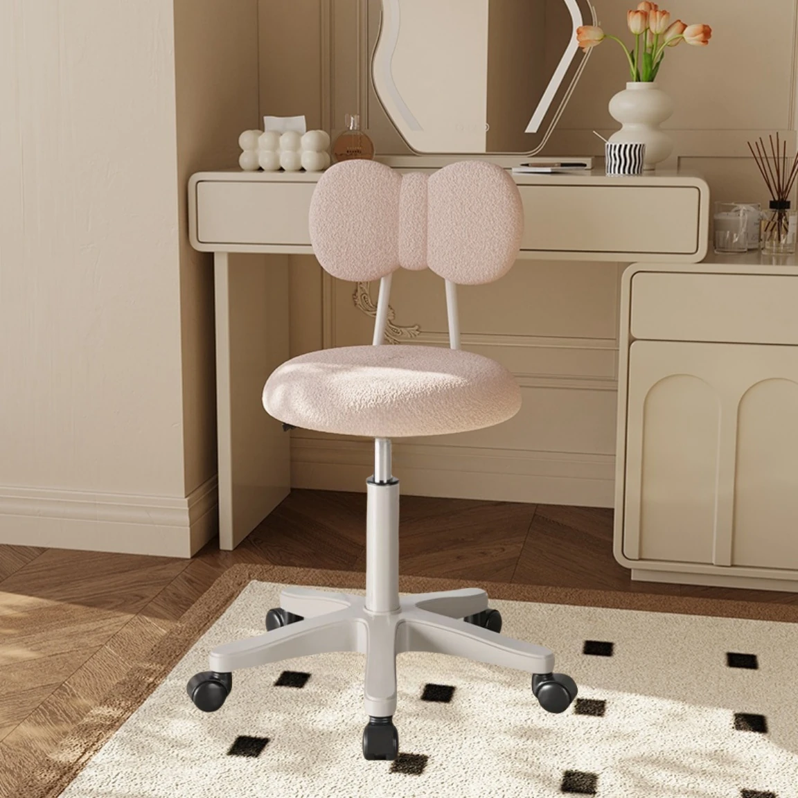 Elevate Your Vanity Experience with Our Adjustable Rotating Makeup Stool - Luxurious Bow-Back Design for Girls' Bedrooms, Perfect for Glamorous Dressing Tables!
