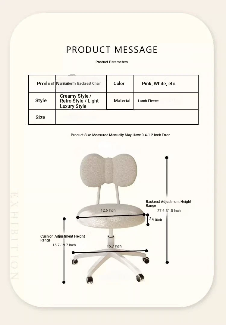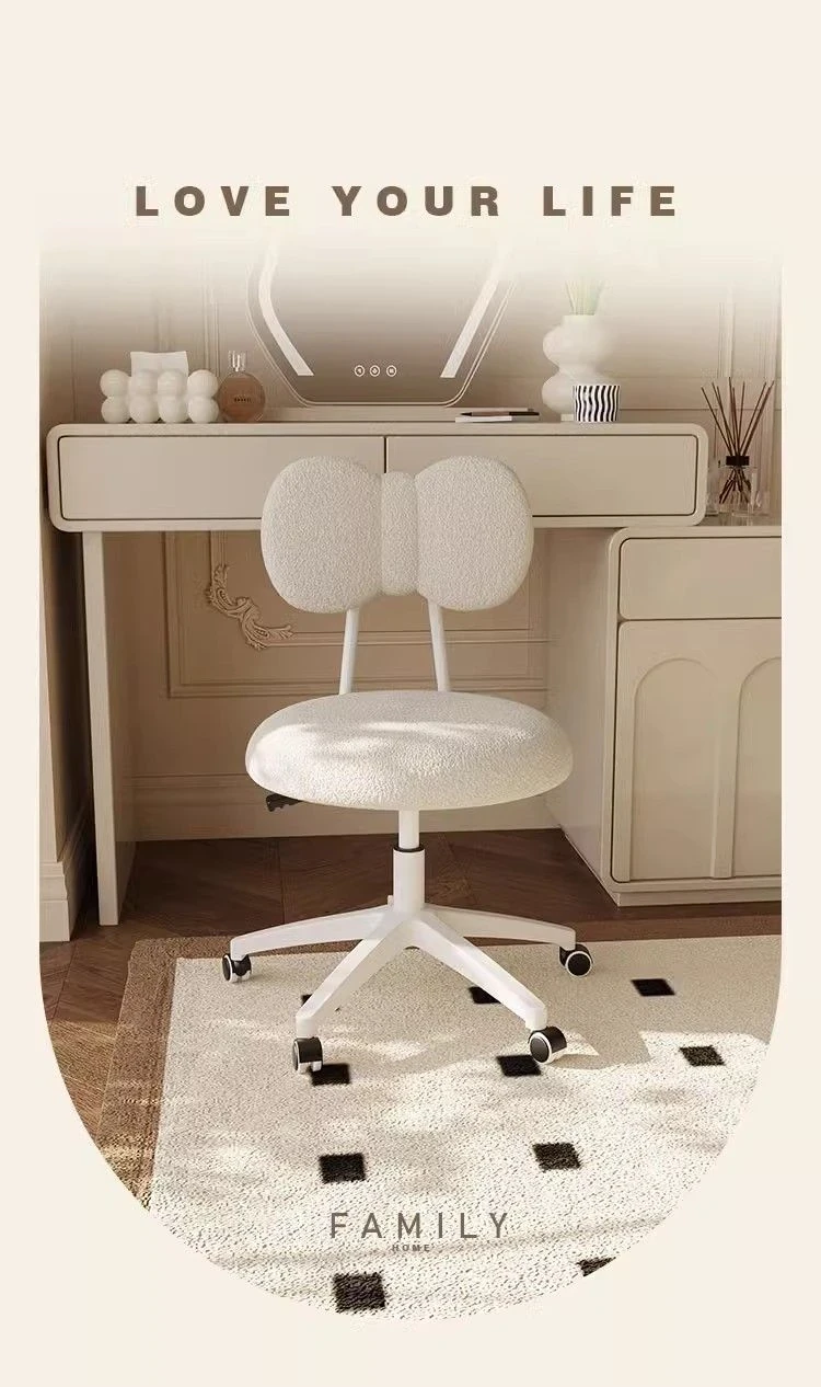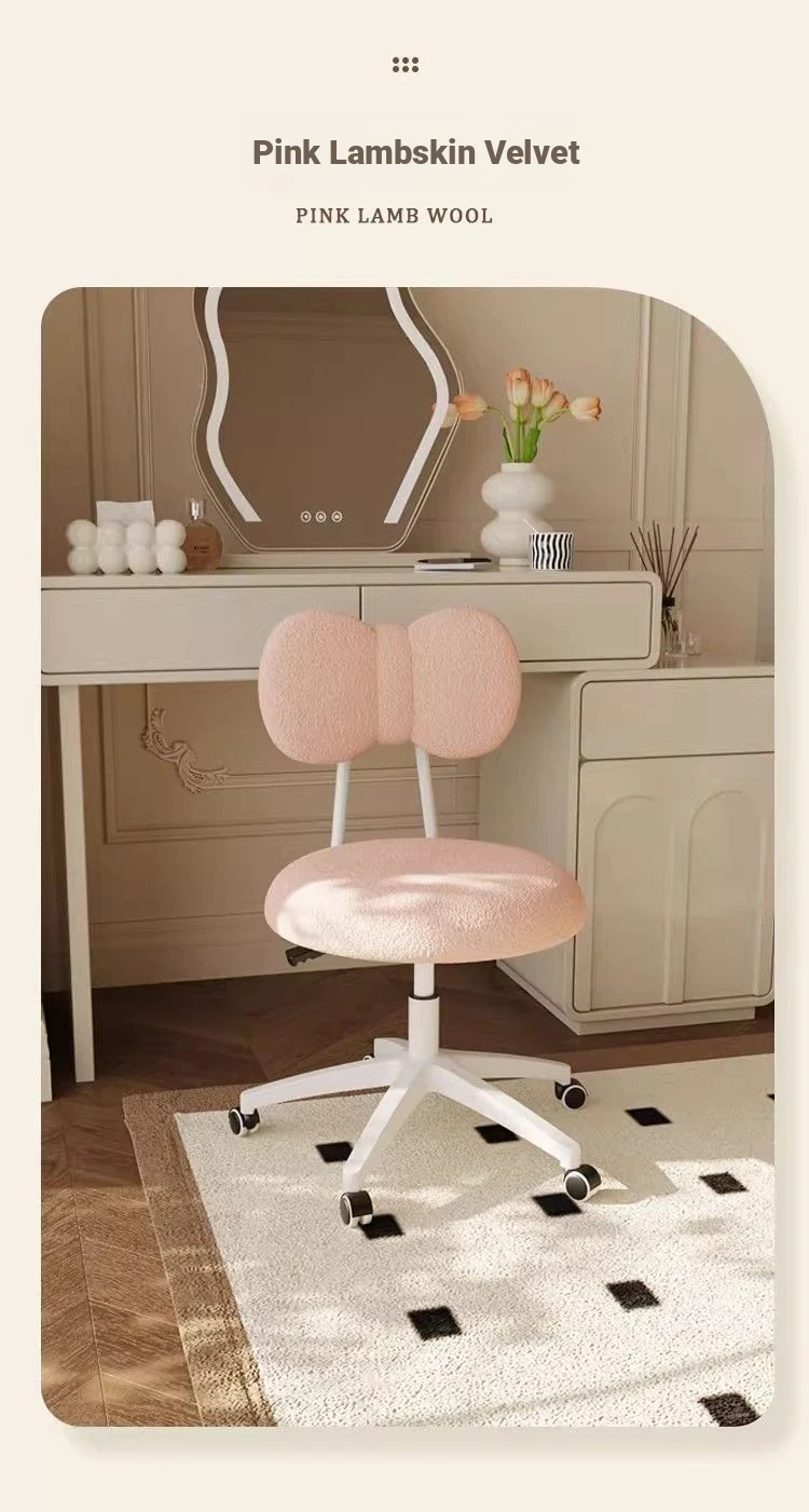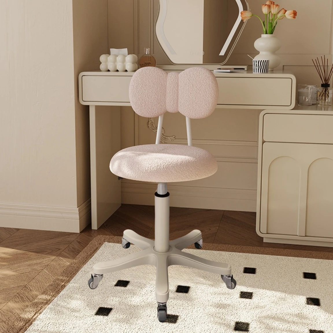 Elevate Your Vanity Experience with Our Adjustable Rotating Makeup Stool - Luxurious Bow-Back Design for Girls' Bedrooms, Perfect for Glamorous Dressing Tables!