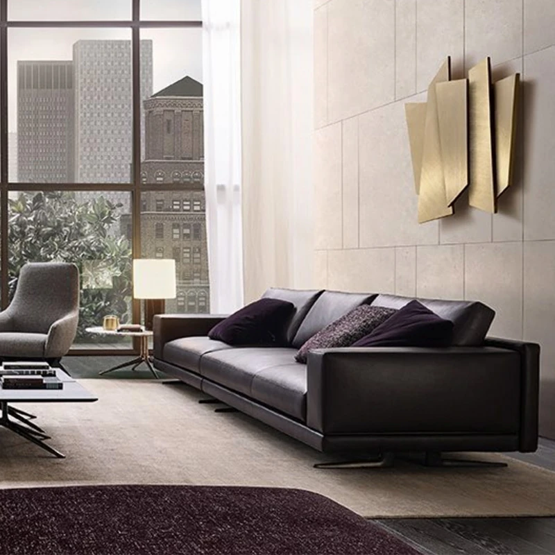 Fexunlai Italian Minimalist Mondrian Genuine Leather Sofa - High-End Designer Corner Combination for Luxurious Villa Living Rooms