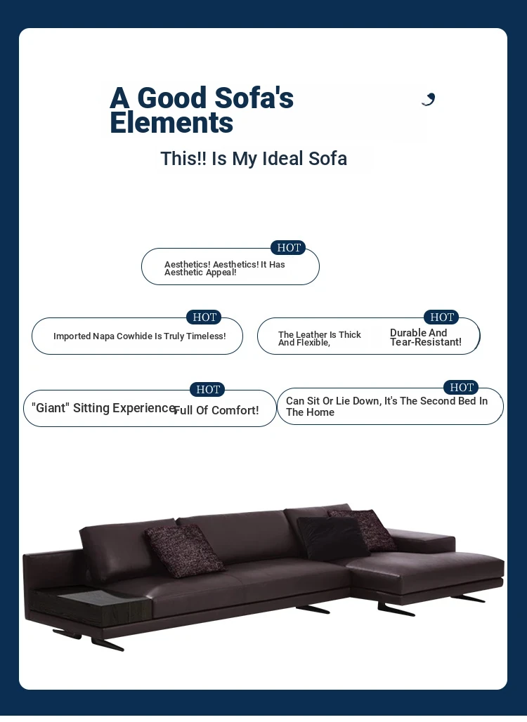 102.36in straight row + side cabinet [full leather Import thickened Nappa cowhide + high elastic sponge]]