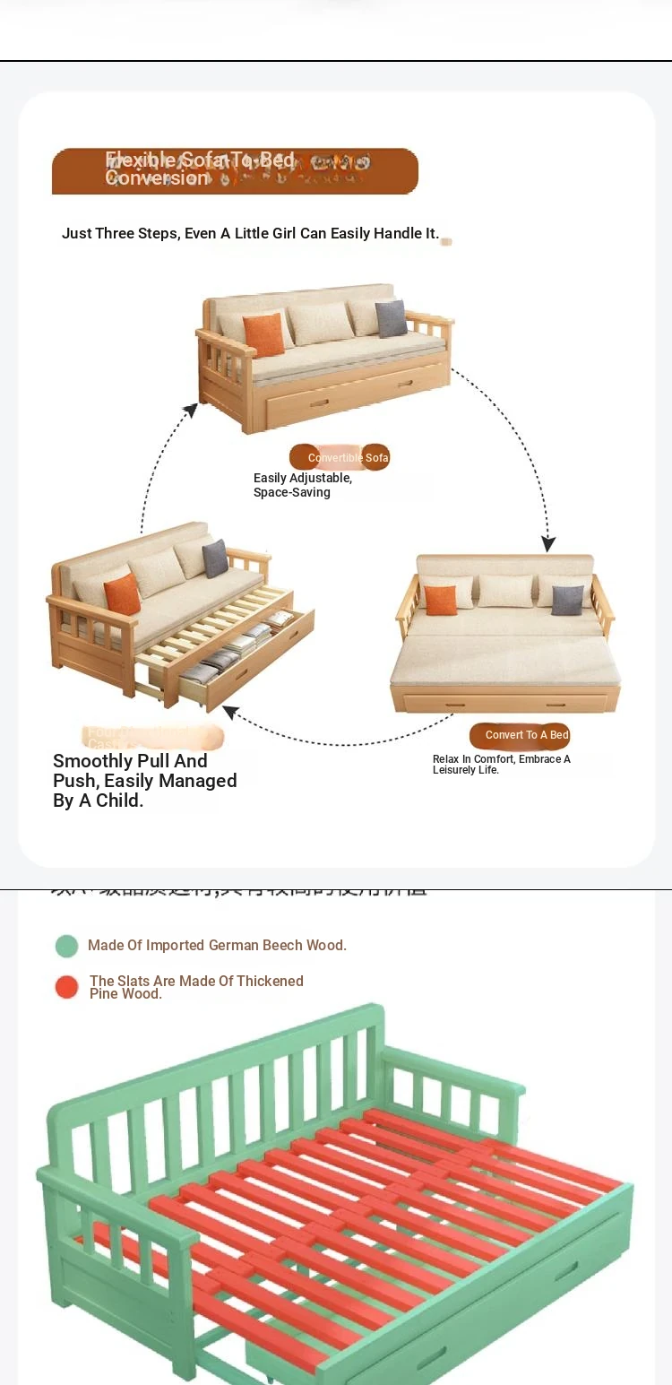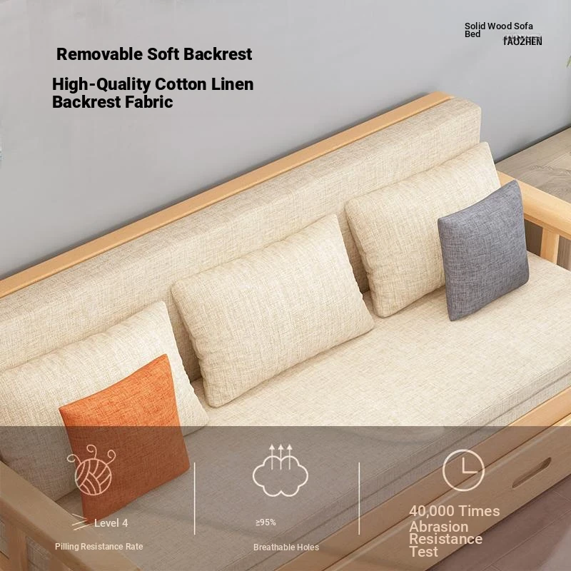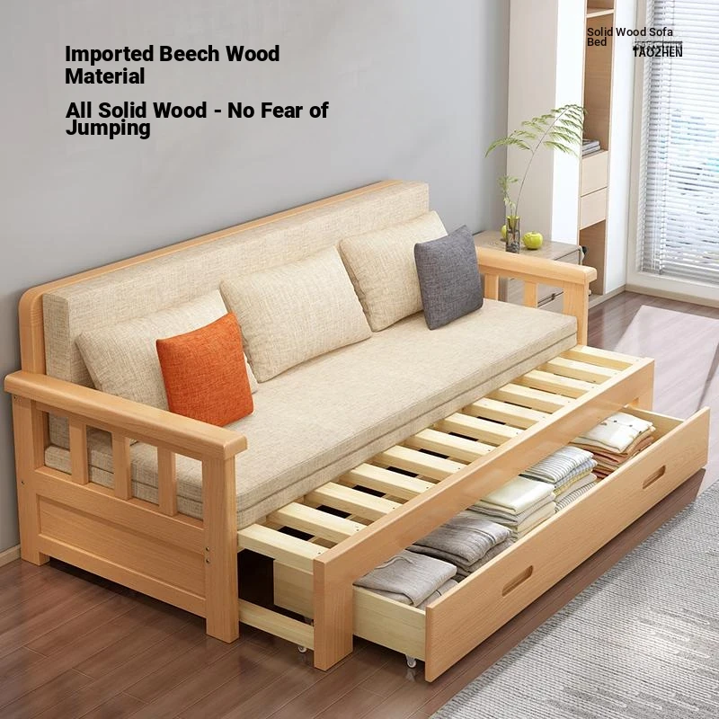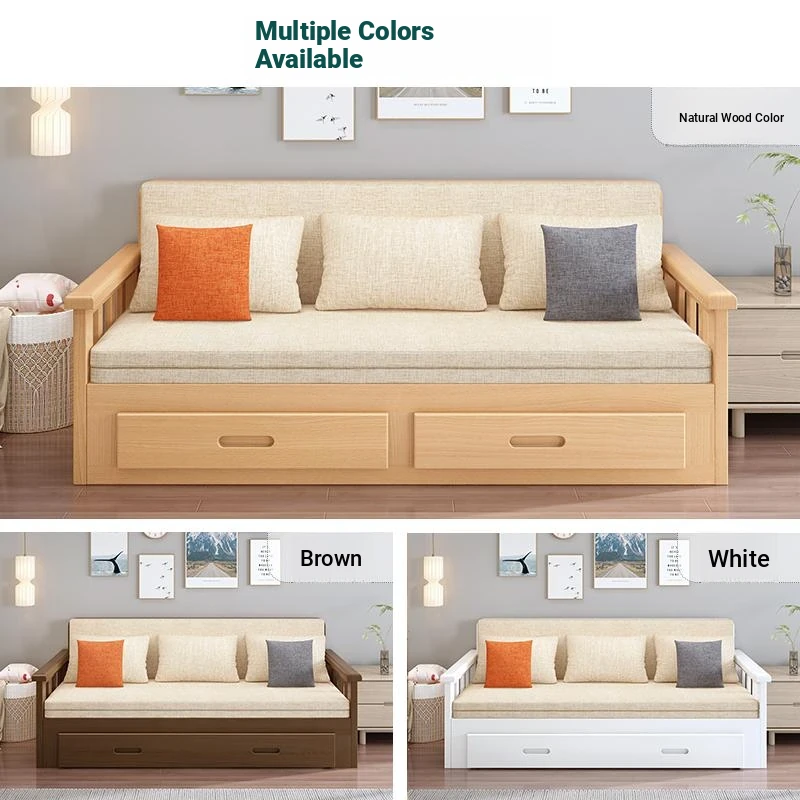 【Free Shipping in Hong Kong】Versatile Solid Wood Folding Sofa Bed for Small Spaces - Trendy Design for Living Room, Perfect for Couples with Storage Solution!