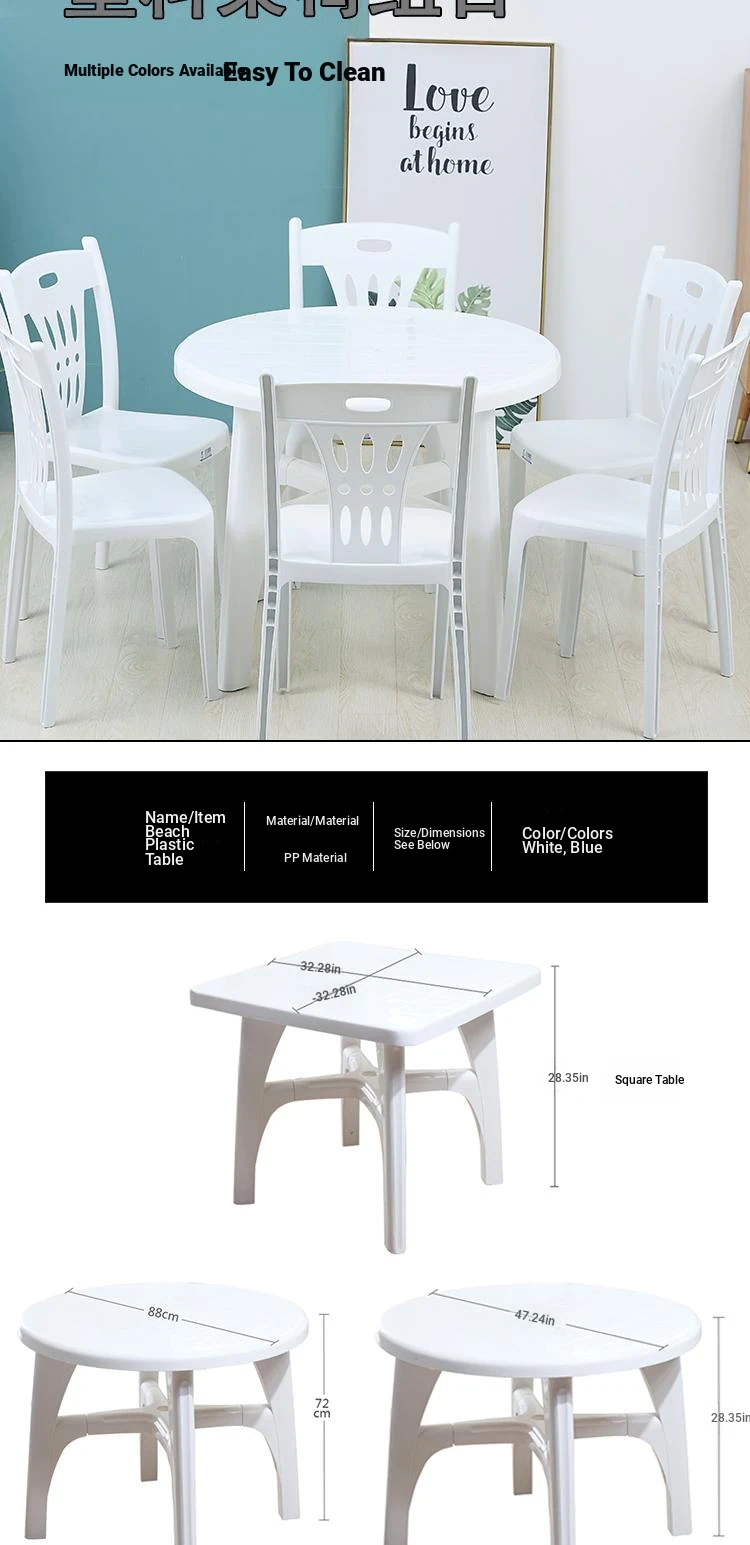 Free Shipping to Hong Kong and Macau - Thickened Plastic Round Dining Table for Outdoor Use, Perfect for Beach and Commercial Dining, Spacious Square Design for Large Gatherings