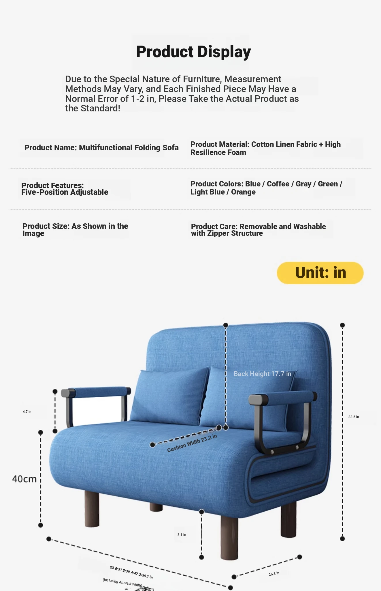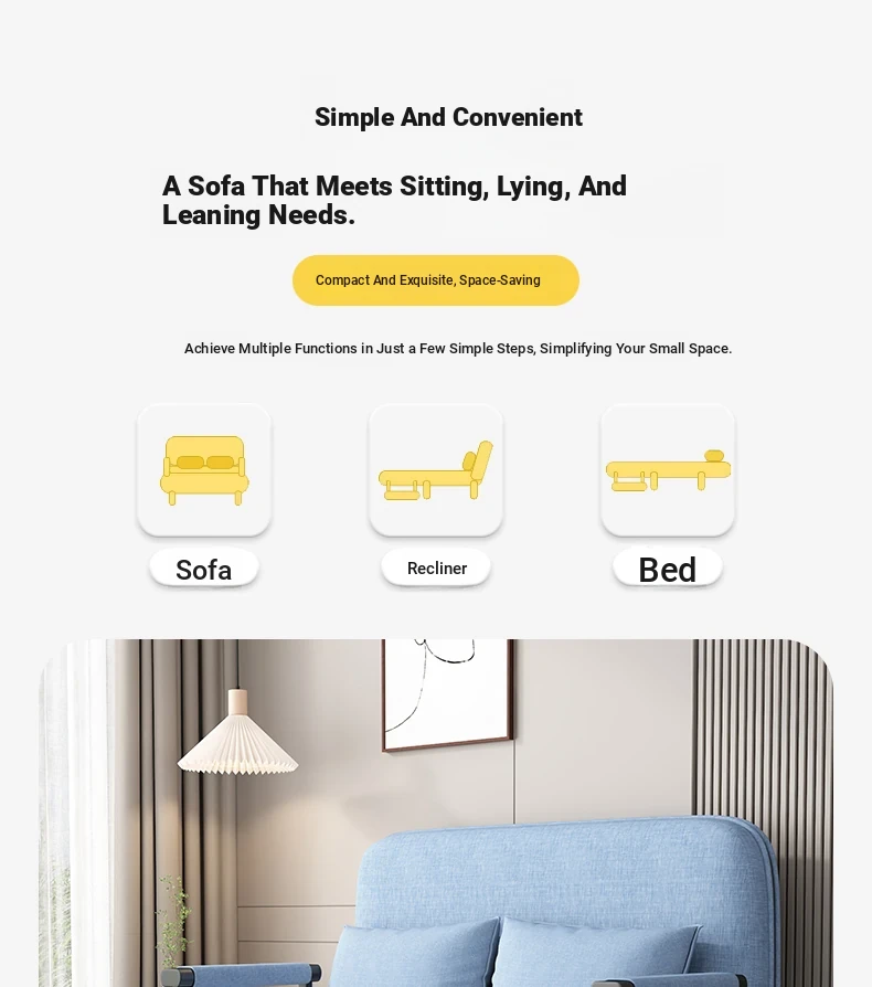 [Free Shipping to Hong Kong] Foldable Sofa Bed - Multi-functional Lazy Chair for Small Spaces, Perfect for Balcony and Living Room, Easily Converts for Two People