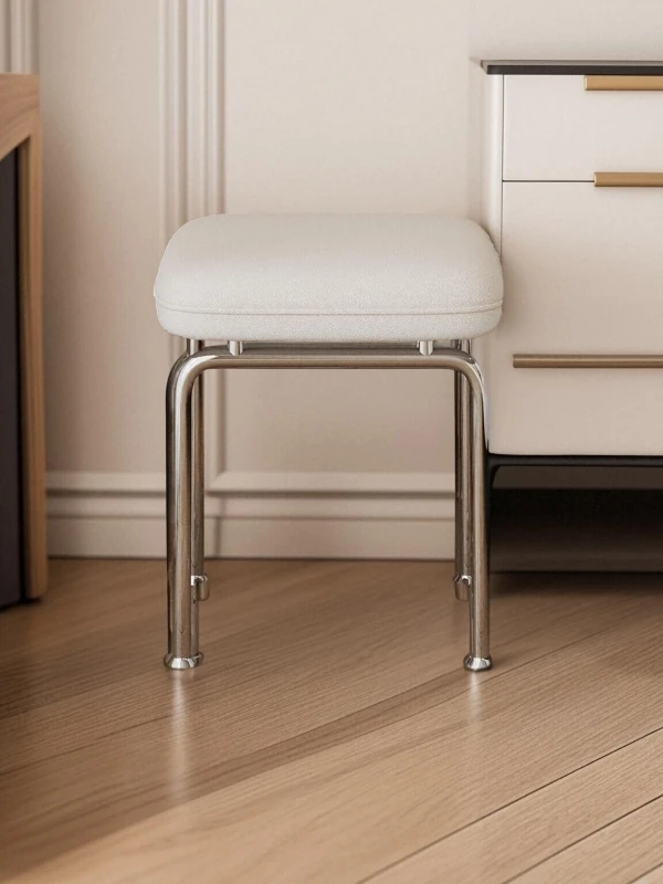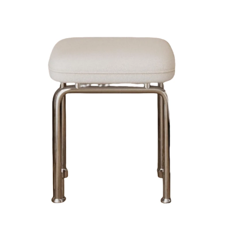 Square stool [rice White] Ultra-fiber leather + stainless steel