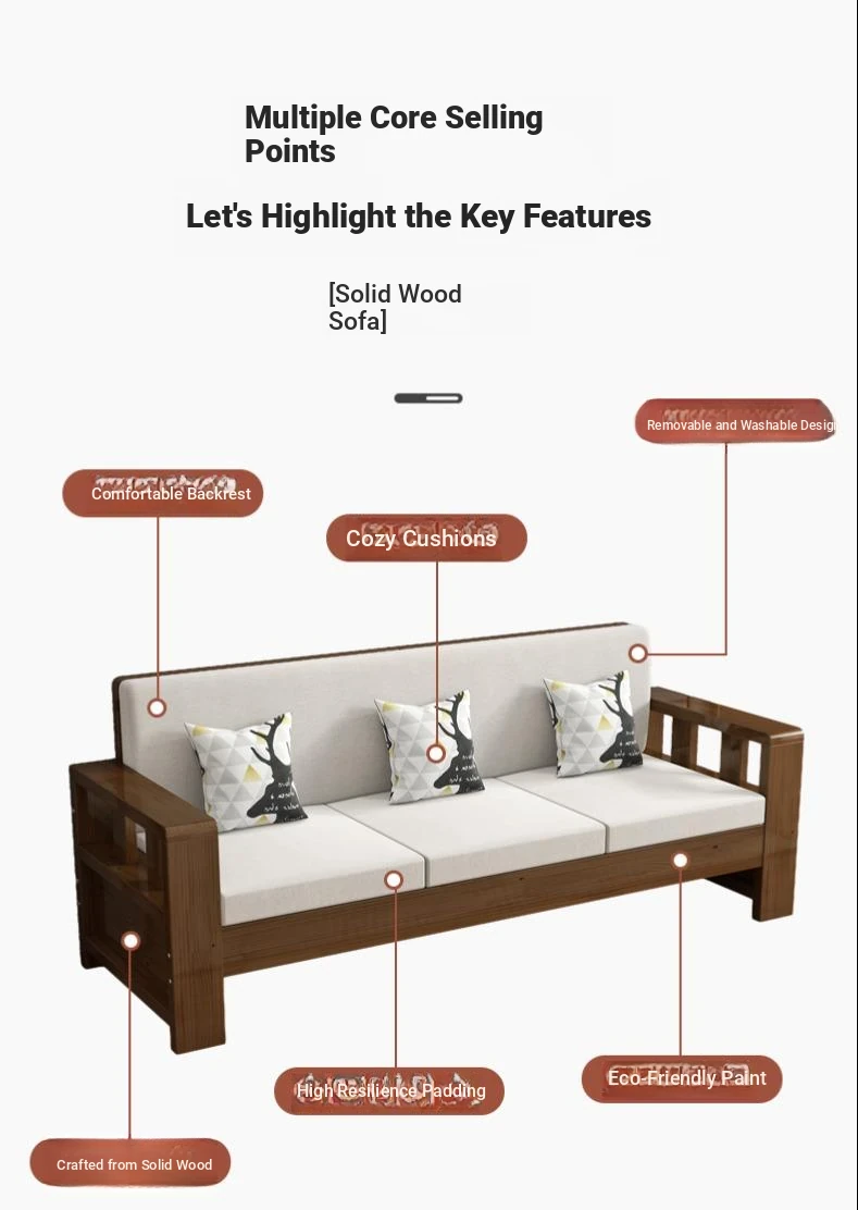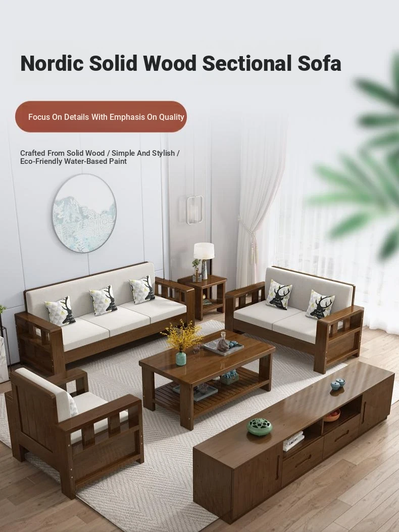 Hong Kong Free Shipping - Chinese Style Solid Wood Sofa Set, Minimalist Design for Living Room, Versatile for Winter and Summer, Perfect for Small Spaces and Budget-Friendly Furniture