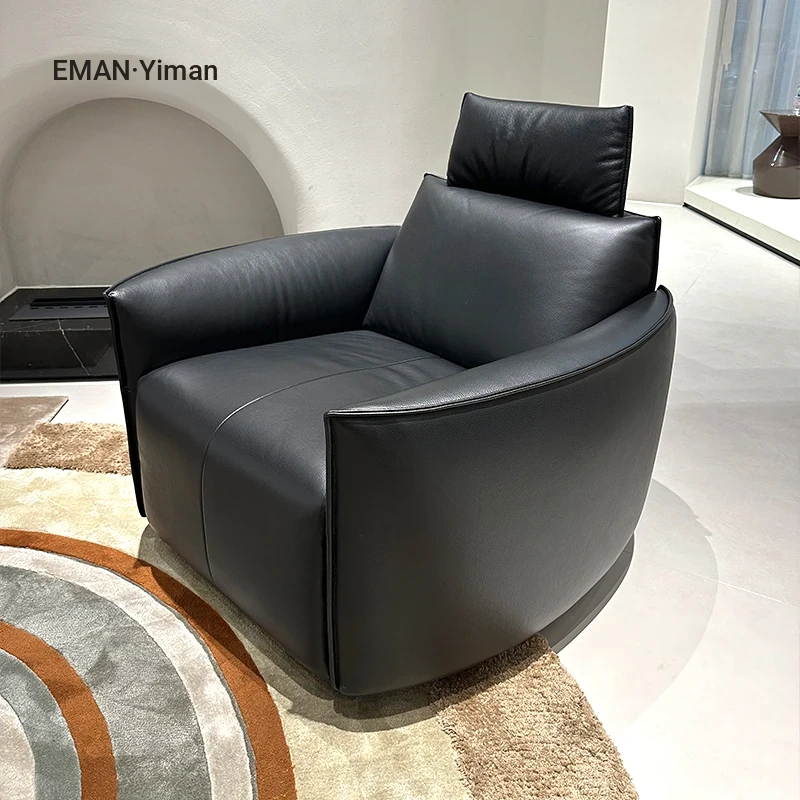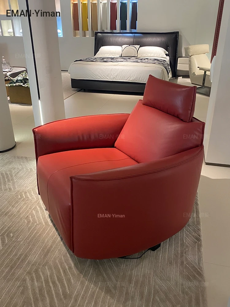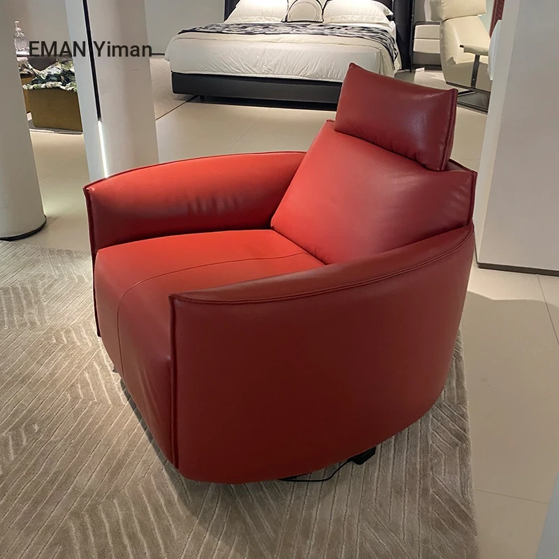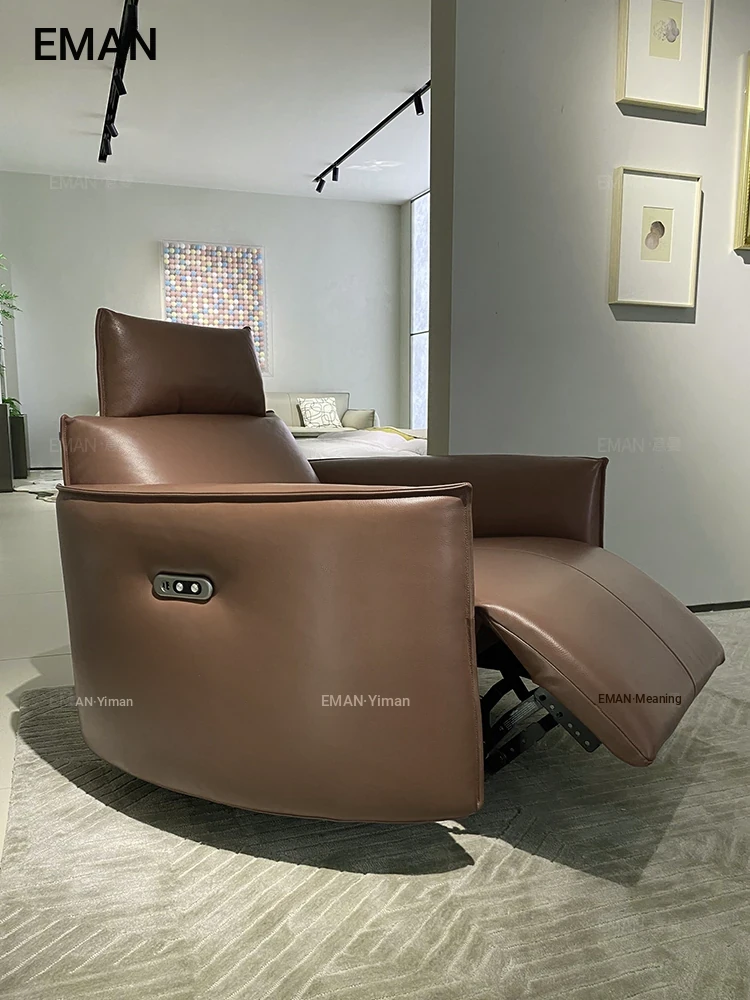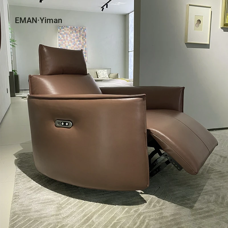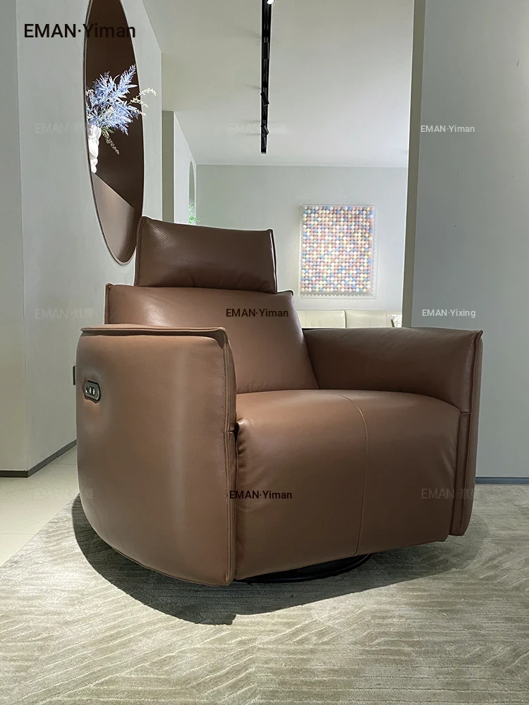 Italian Minimalist Full Leather Electric Recliner – Modern Single Sofa Chair for Living Room, Designer Swivel Lounge Chair