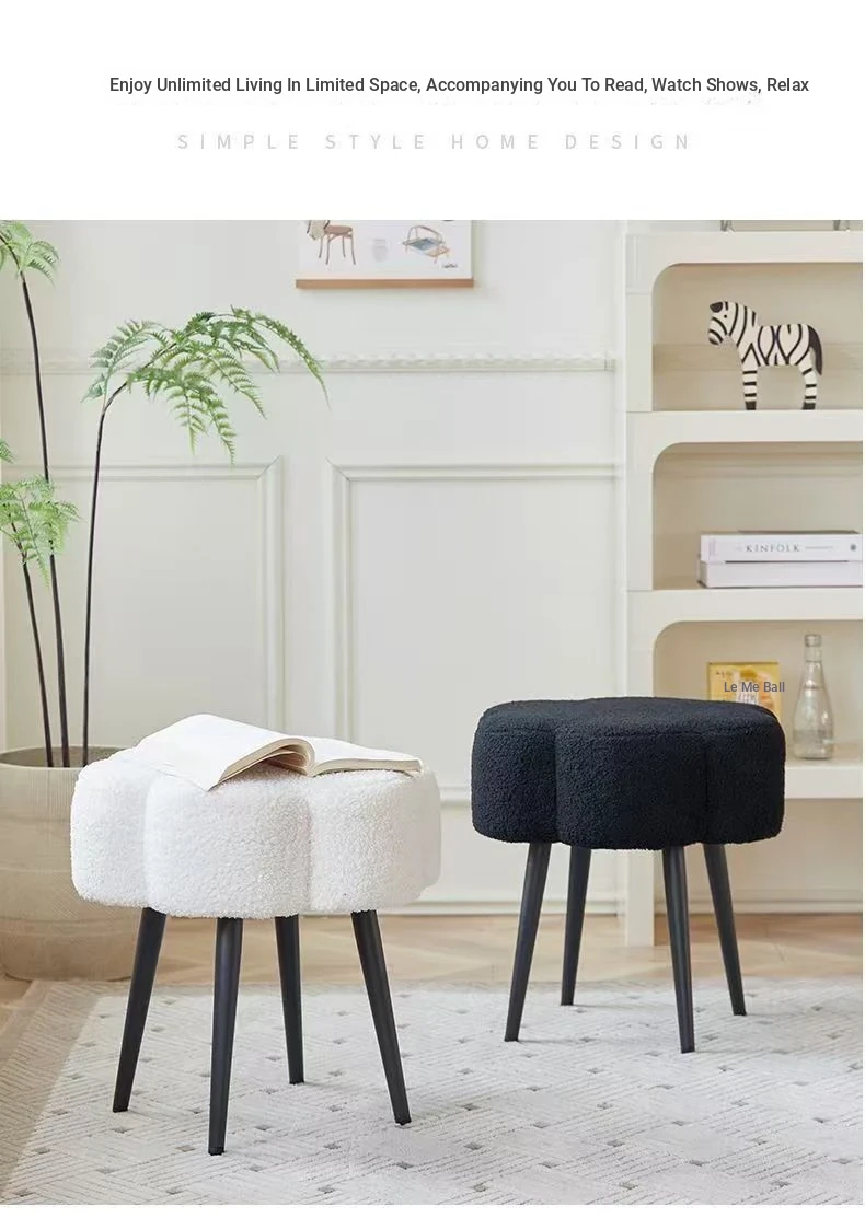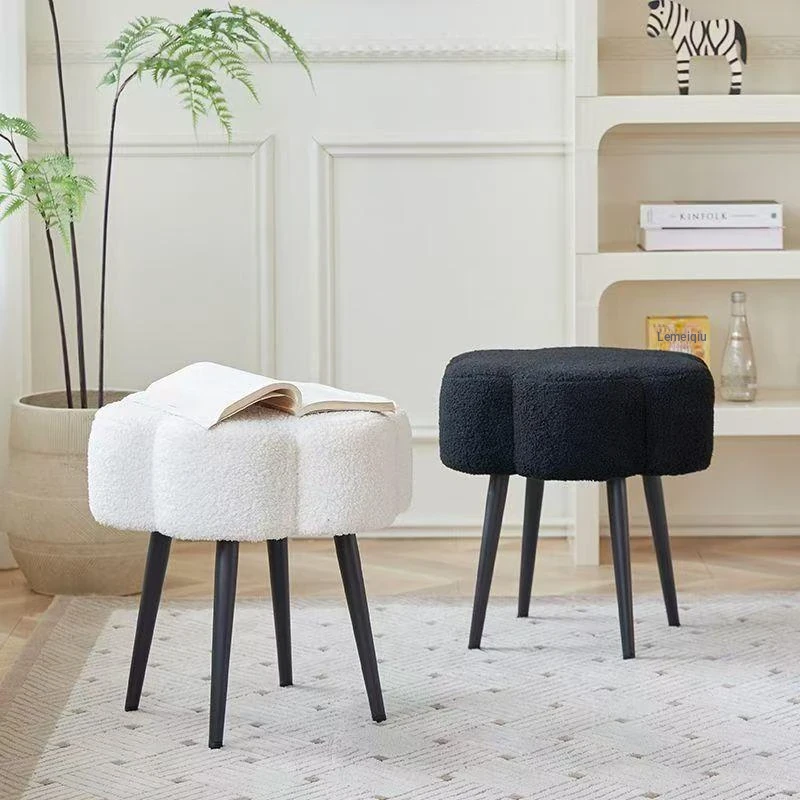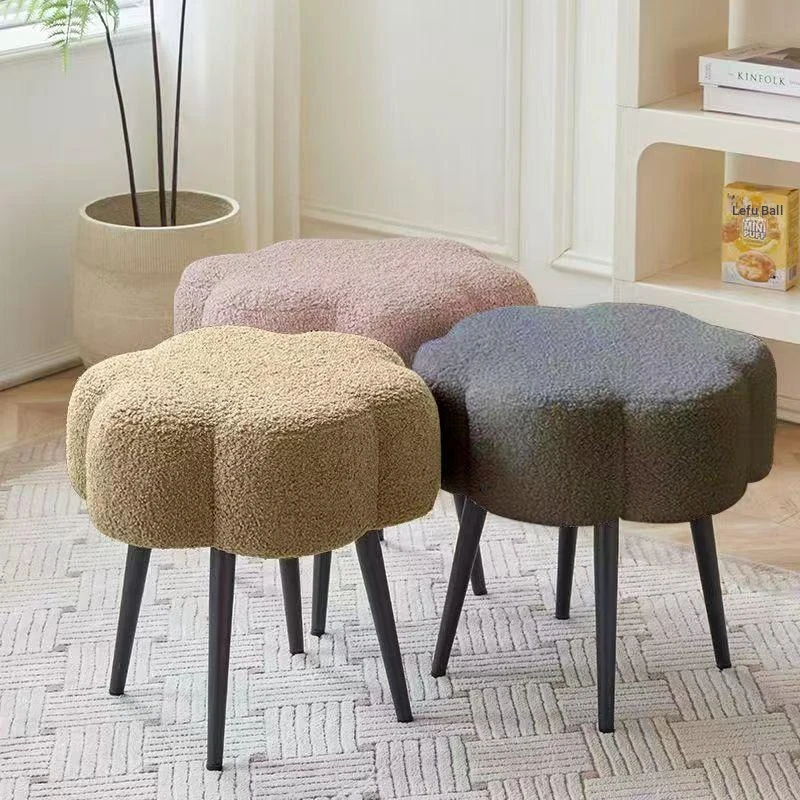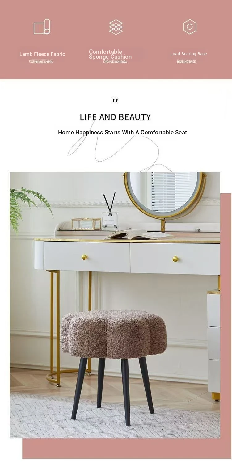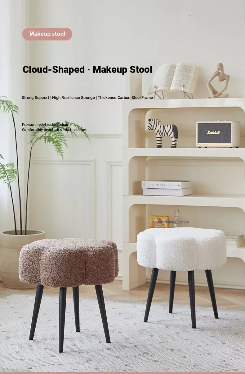 Luxurious Lamb Fleece Makeup Stool - Chic and Minimalist Design for Your Bedroom or Dressing Room, Cloud-Shaped Accent Chair, Perfect for a Stylish Touch!