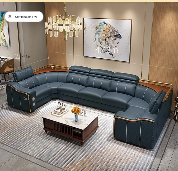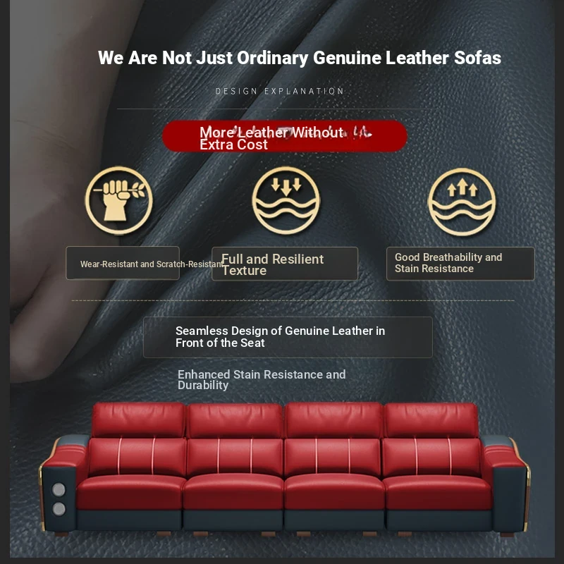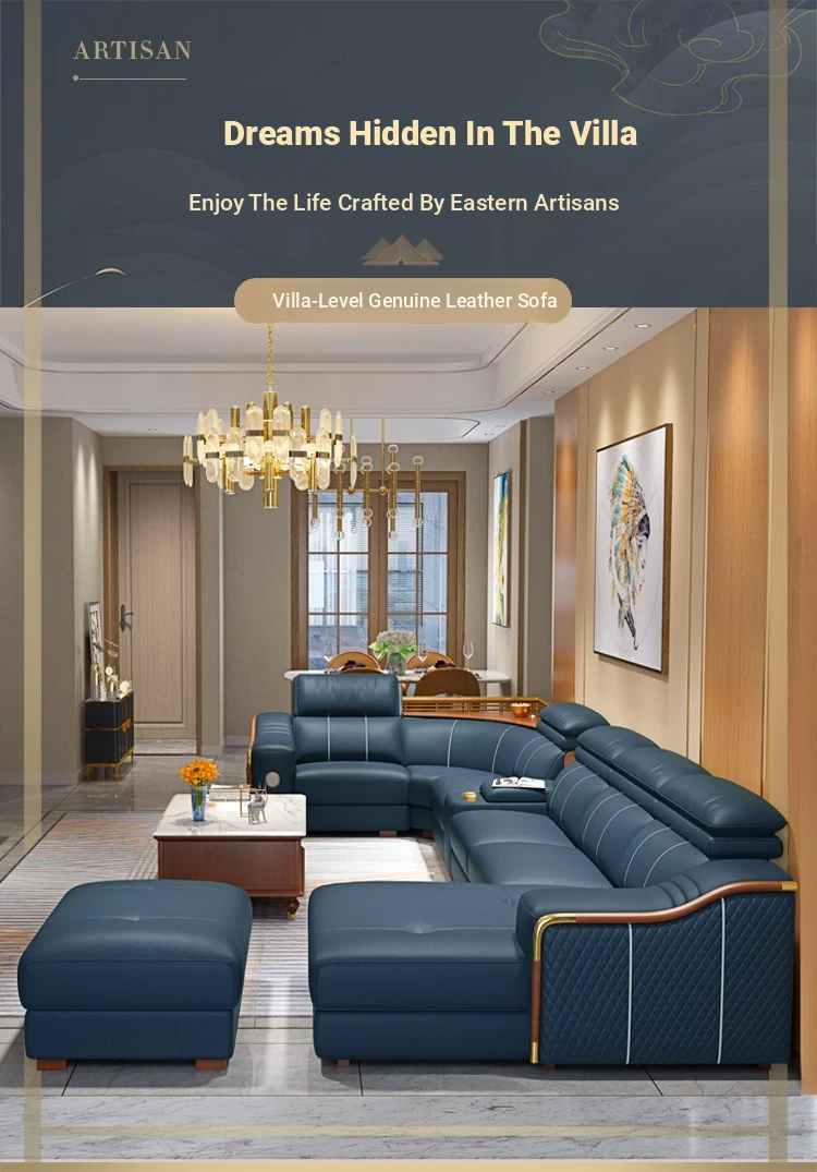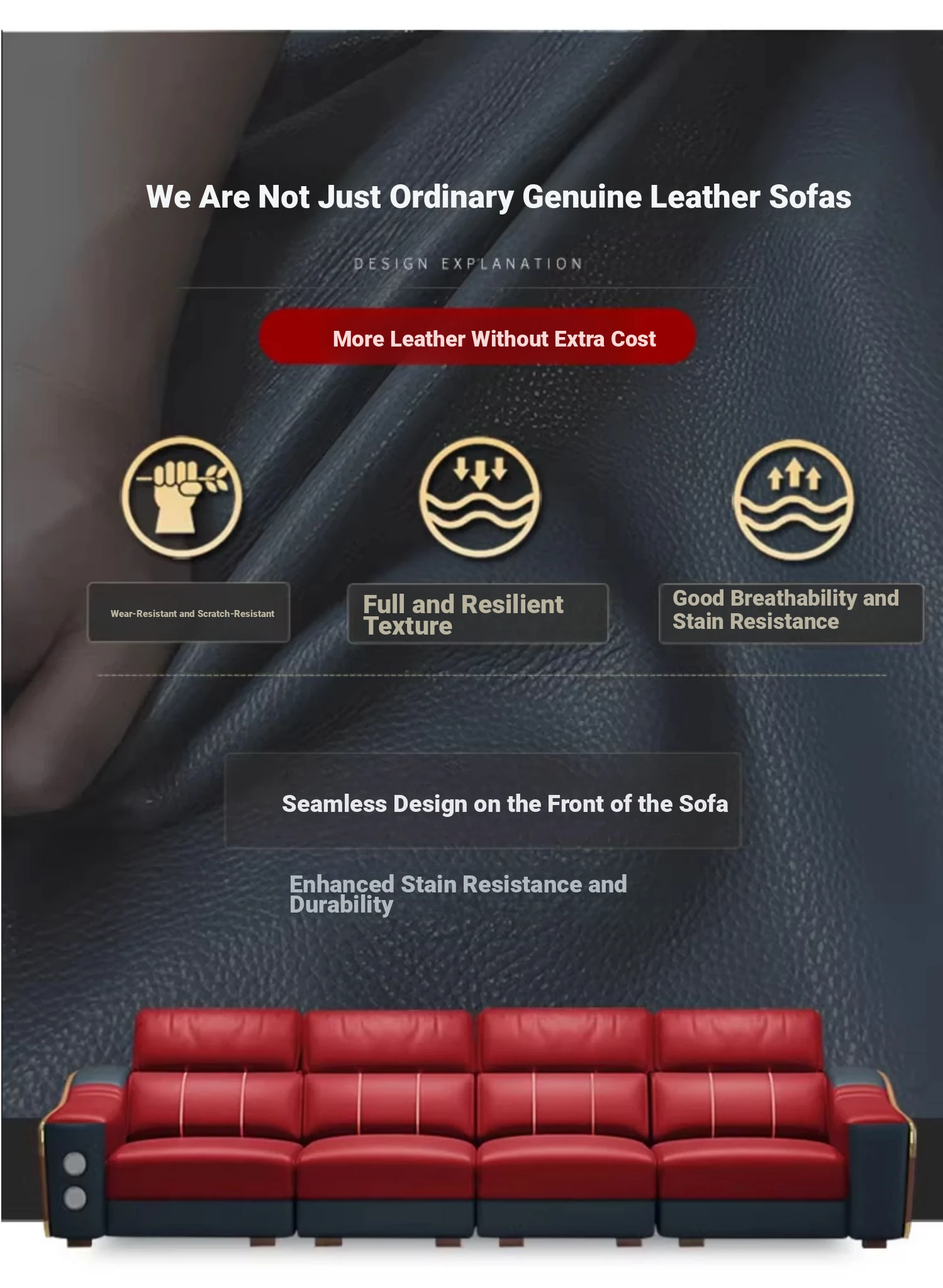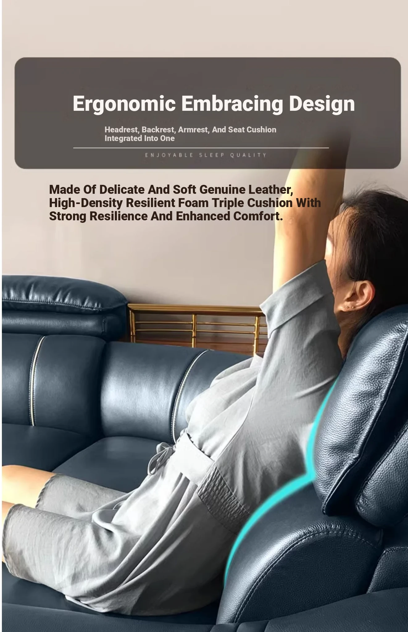 Luxurious Leather Sofa Set for Spacious Living Rooms - Modern Minimalist Design, Made with Top-Grade Cowhide and Down-Filled Cushions, Perfect for Upscale Villas.