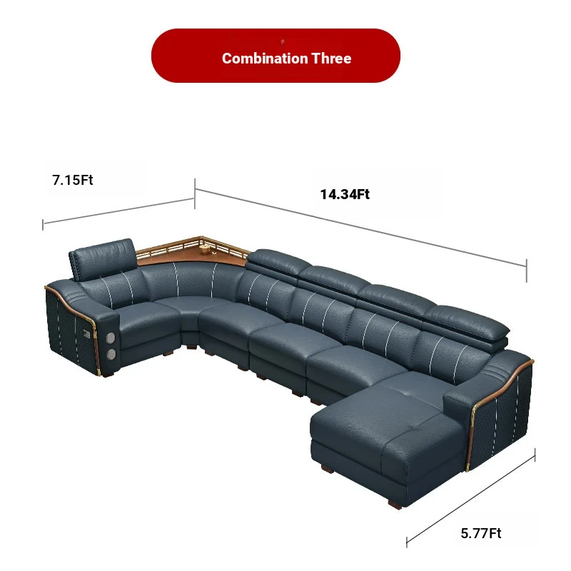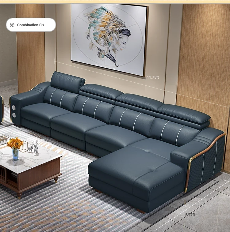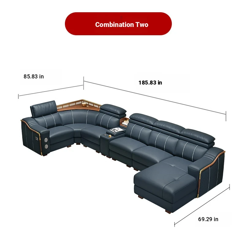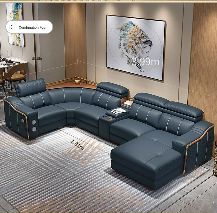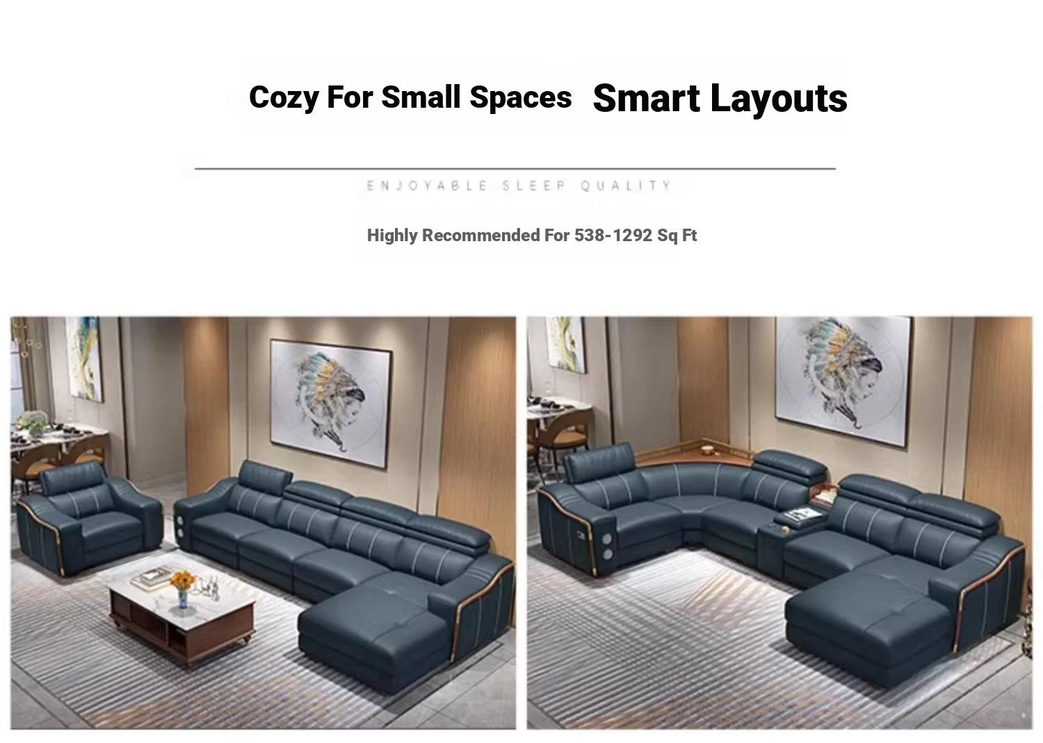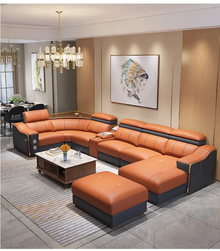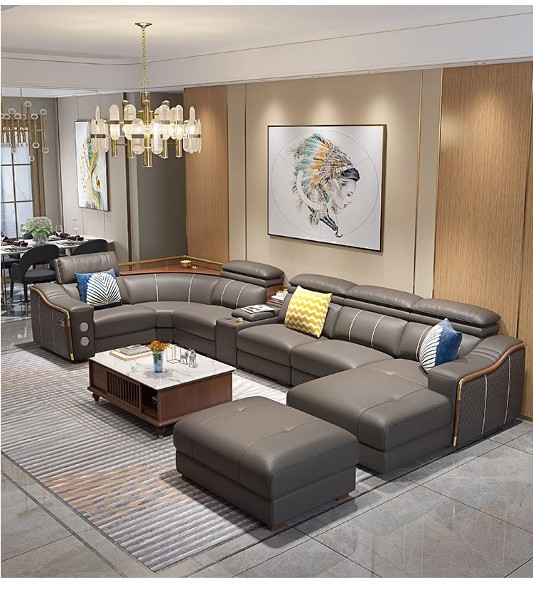 Luxurious Leather Sofa Set for Spacious Living Rooms - Modern Minimalist Design, Made with Top-Grade Cowhide and Down-Filled Cushions, Perfect for Upscale Villas.